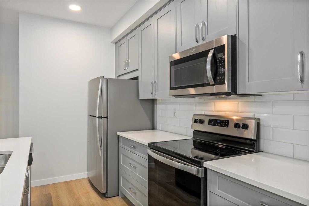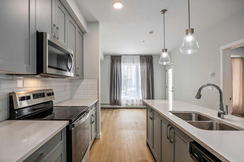 Welcome to this beautifully designed 2-bedroom condo offering modern comfort and stylish upgrades. Inside, the open-concept layout features high-end 7 mm luxury vinyl plank flooring throughout, providing both durability and waterproof performance. The contemporary kitchen is thoughtfully designed with quartz countertops, stainless steel appliances, and a central island with breakfast bar seating - perfect for everyday living and entertaining. The bright and spacious living area is filled with natural light ...