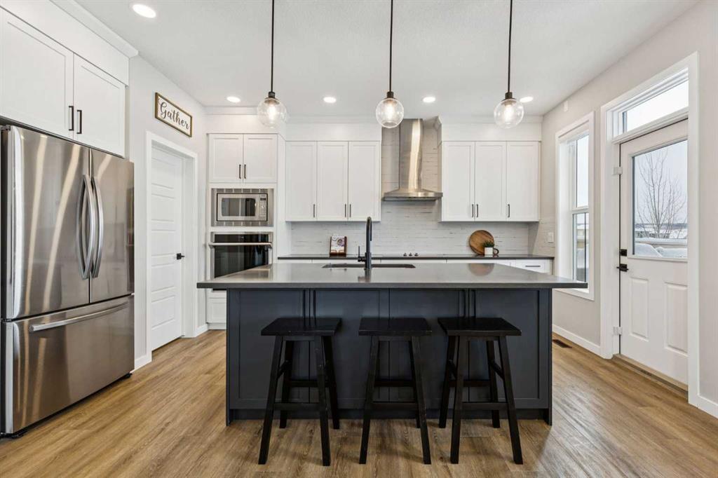 Welcome to this stunning 3-STOREY CORNER-LOT home in Heartland, offering exceptional style, thoughtful upgrades, and unbeatable MOUNTAIN VIEWS FROM EVERY LEVEL. Perfectly positioned backing onto GREEN SPACE, this property features a fully fenced WEST-FACING BACKYARD, complete with a spacious DECK. Step inside to a bright and airy main floor with LARGE WINDOWS, BUILT-IN SPEAKERS (requires Sonos amp to run them), and a sleek ELECTRIC FIREPLACE with a FLOATING MANTLE. The modern kitchen is designed for everyd...