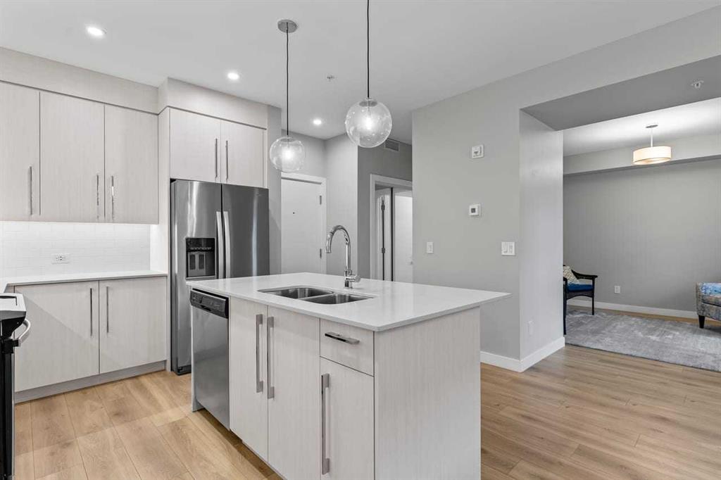 Come check out the open houses this weekend! Saturday February 7: 2:00-4:00pm & Sunday Feb 8: 12-2:00pm. Enjoy maintenance-free living in this spacious one-bedroom condo in the sought-after 55+ Maple building, ideally located in Calgary’s vibrant University District. Built by Truman Homes, Maple offers a secure, social community with luxury finishes, perfect for those ready to simplify life without sacrificing lifestyle. Unit 107 is a convenient main-floor condo with direct access to the covered patio and w...