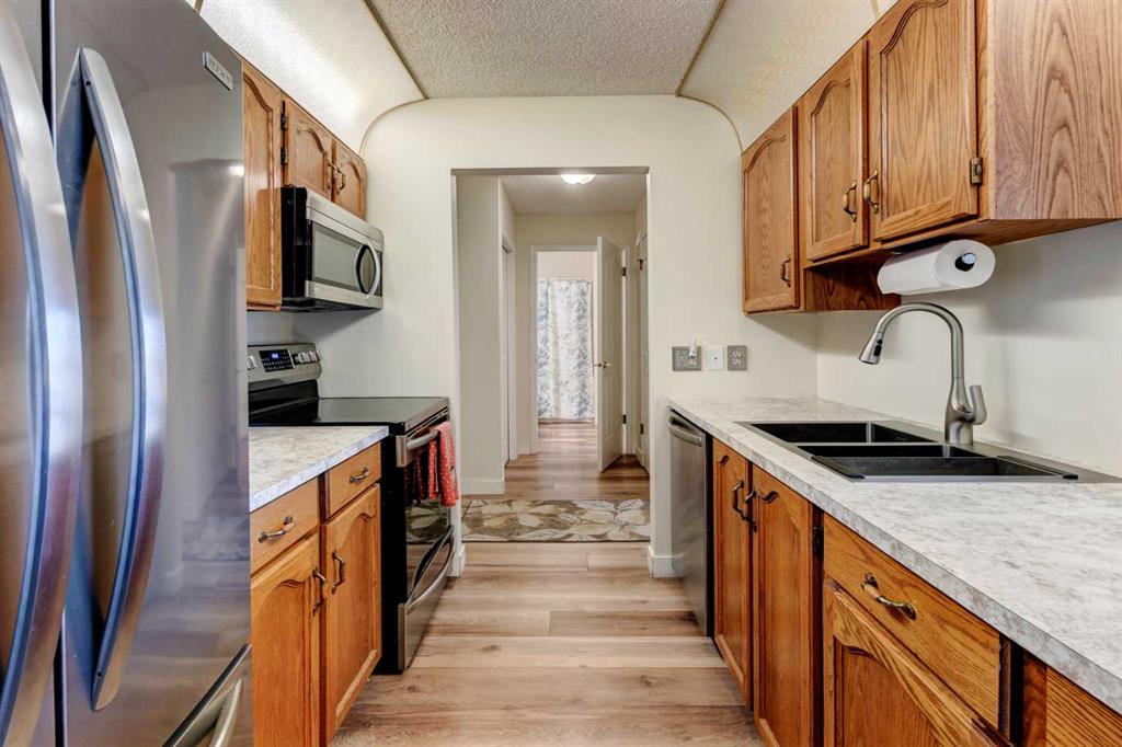 Located beside the Woodside Golf Course and just moments from all the amenities you need, this 55+ condo offers comfort, convenience, and a beautifully updated interior you’ll love coming home to. Step inside to find two inviting bedrooms and a bright 4-piece bathroom, complemented by a series of upgrades completed within the last three years. Enjoy stylish vinyl plank flooring throughout, fresh modern paint, updated laminate countertops, a deep stainless-steel sink, and a full stainless-steel appliance pac...