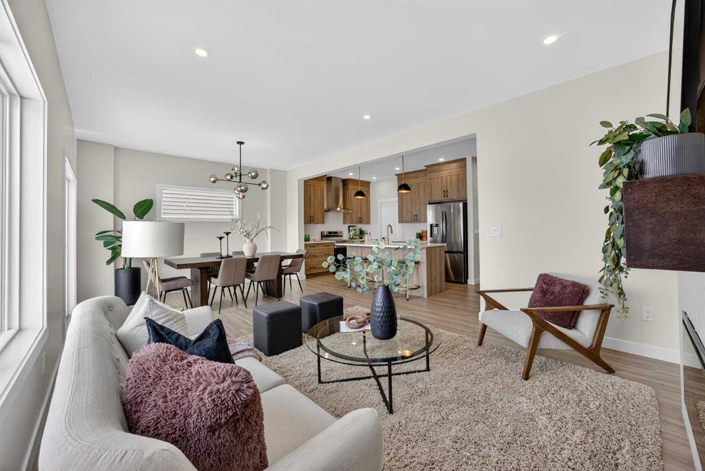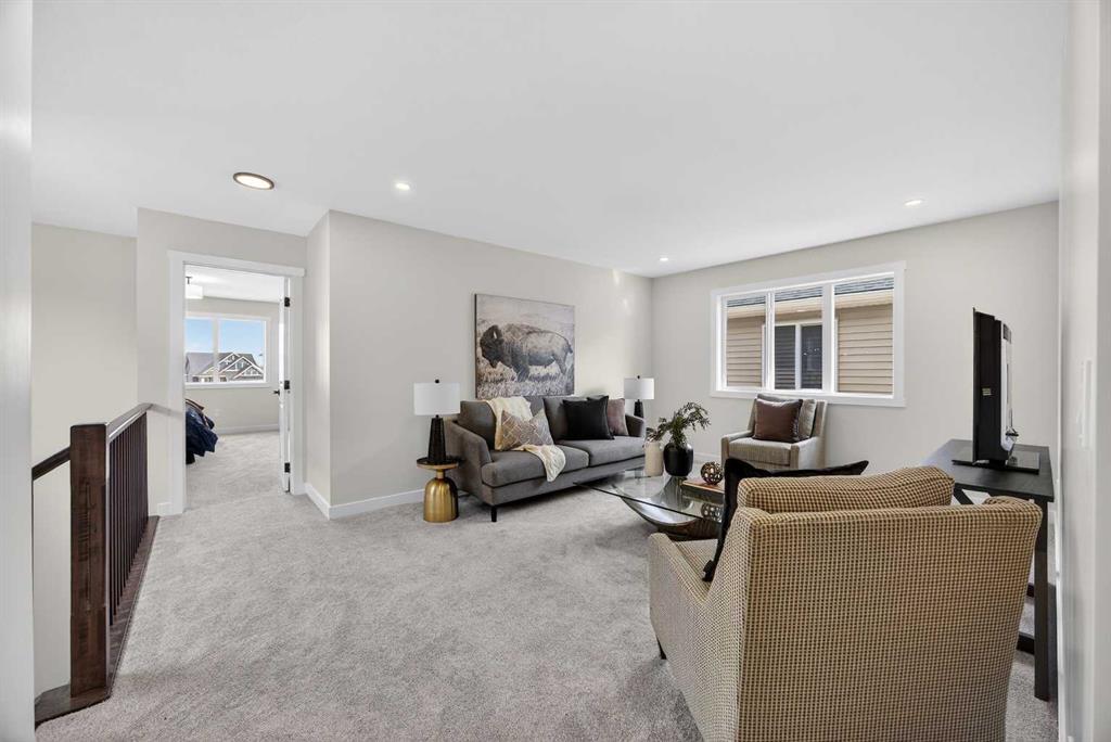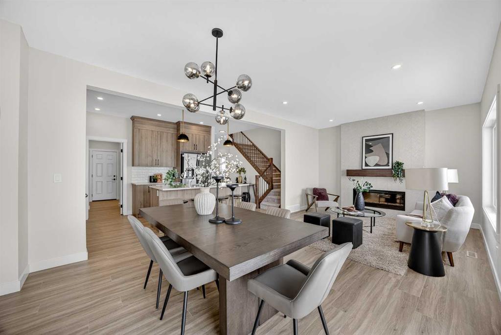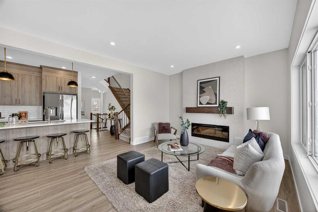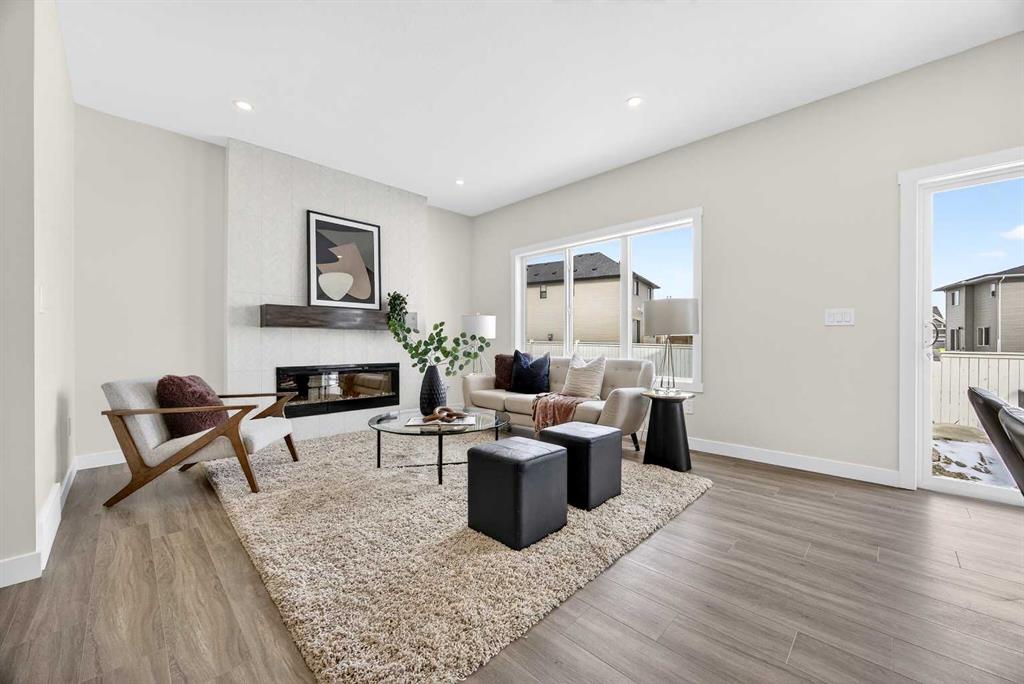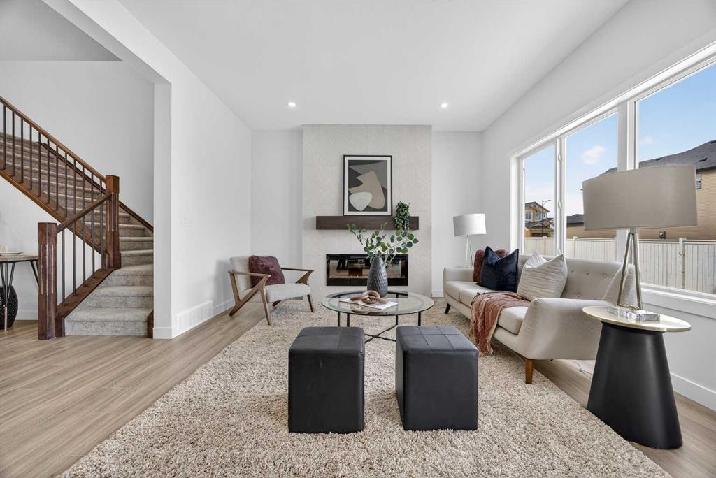 Welcome to the “Leo” a beautifully designed 3-bedroom, 2.5 bathroom brand new home offering over 2000 sq ft of finished living space. Step inside to a bright, inviting main floor featuring luxury vinyl plank flooring that spans the entire level and is complemented by 9-foot ceilings. The chef's kitchen showcases sleek cabinetry with stylish black hardware, paired with a crisp white tile backsplash, elegant quartz countertops, and stainless steel appliances. The living room features a stunning floor-to-ceili...