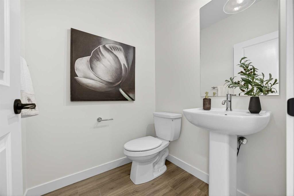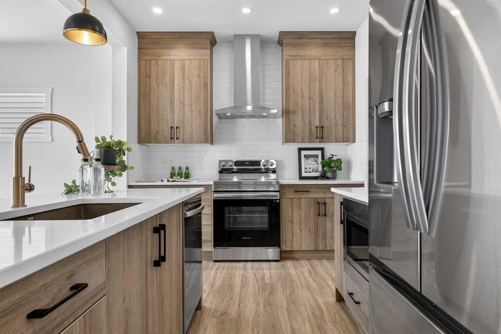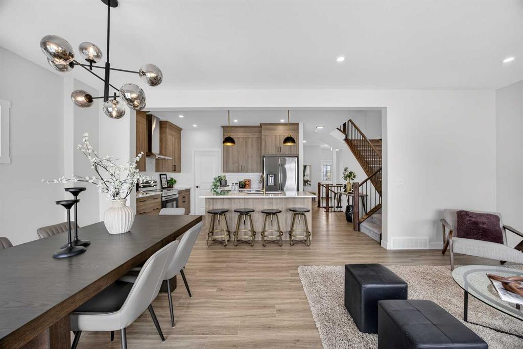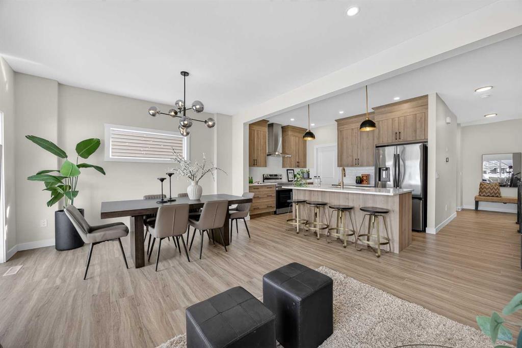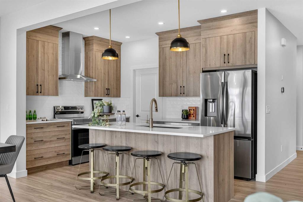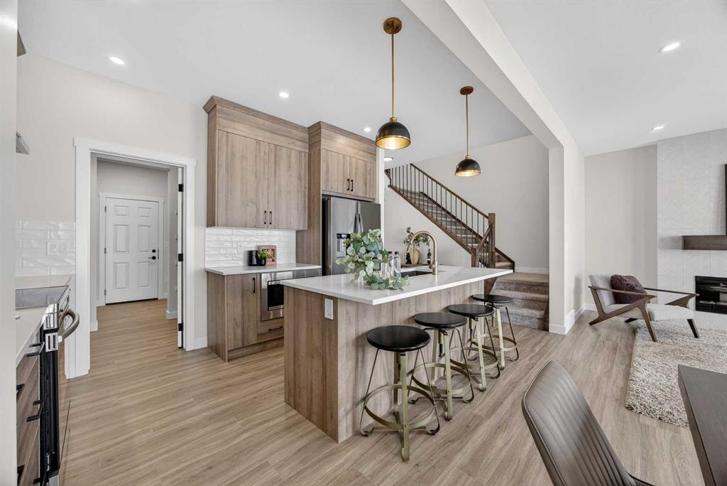 Welcome to the “Leo” a beautifully designed 3-bedroom, 2.5 bathroom brand new home offering over 2000 sq ft of finished living space. Step inside to a bright, inviting main floor featuring luxury vinyl plank flooring that spans the entire level and is complemented by 9-foot ceilings. The chef's kitchen showcases sleek cabinetry with stylish black hardware, paired with a crisp white tile backsplash, elegant quartz countertops, and stainless steel appliances. The living room features a stunning floor-to-ceili...