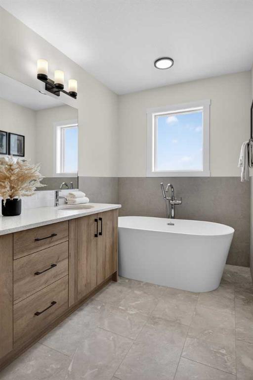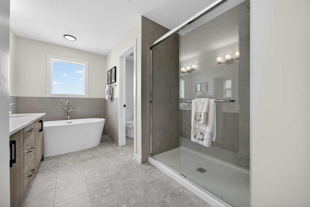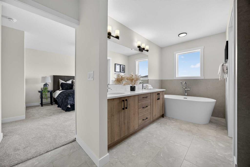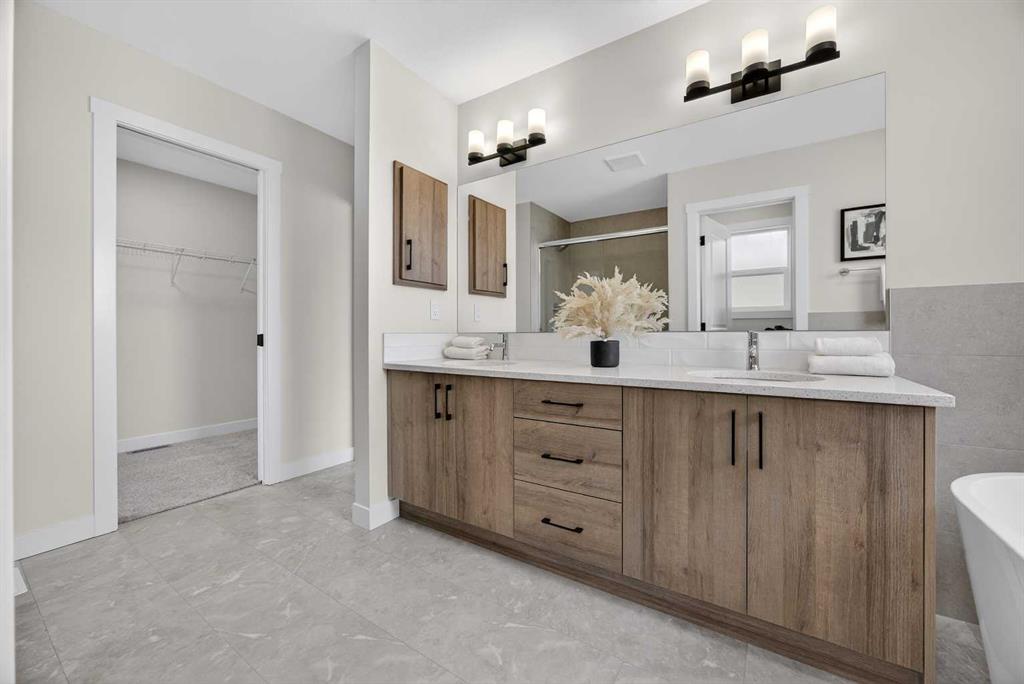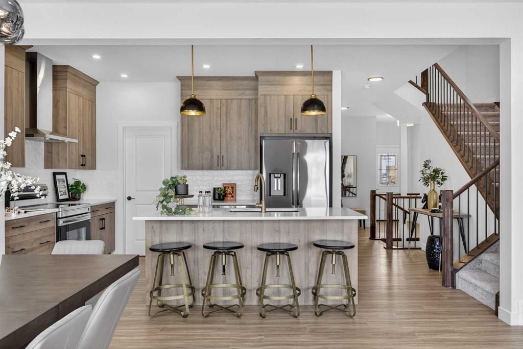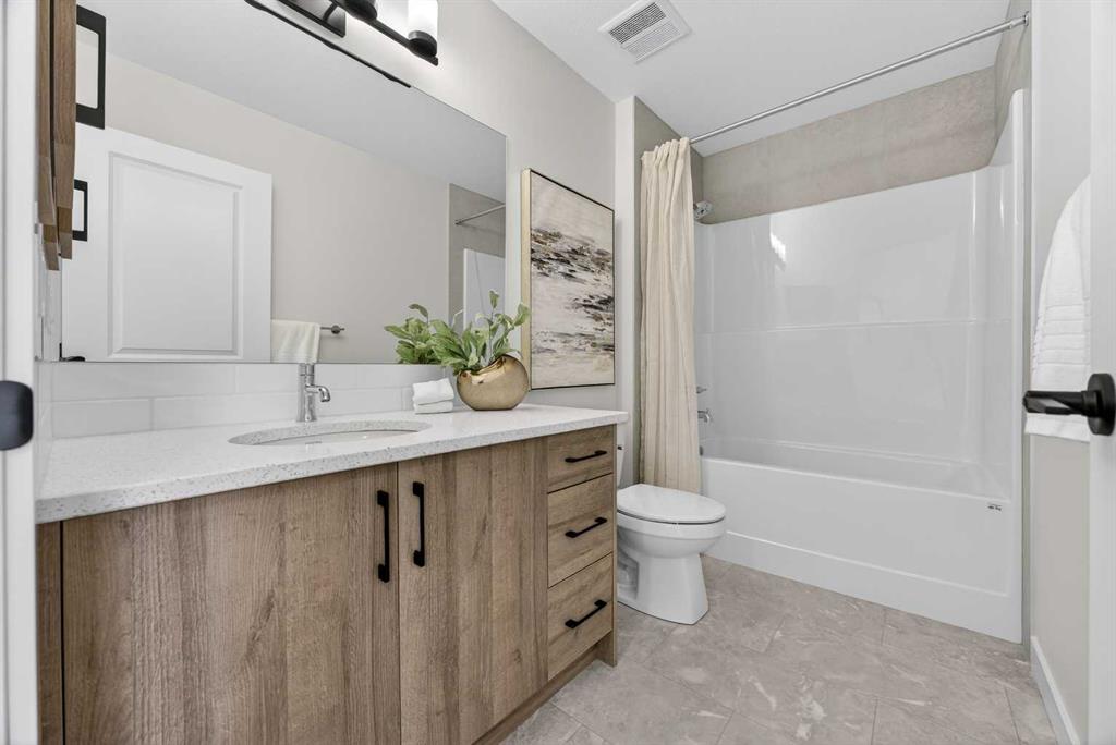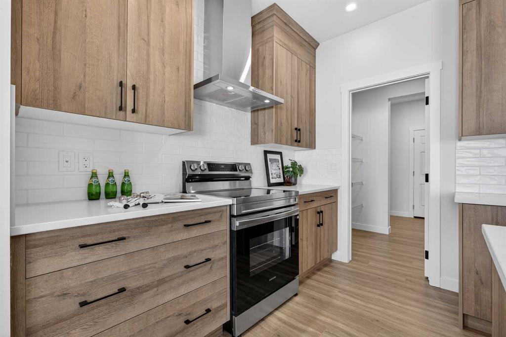 Welcome to the “Leo” a beautifully designed 3-bedroom, 2.5 bathroom brand new home offering over 2000 sq ft of finished living space. Step inside to a bright, inviting main floor featuring luxury vinyl plank flooring that spans the entire level and is complemented by 9-foot ceilings. The chef's kitchen showcases sleek cabinetry with stylish black hardware, paired with a crisp white tile backsplash, elegant quartz countertops, and stainless steel appliances. The living room features a stunning floor-to-ceili...