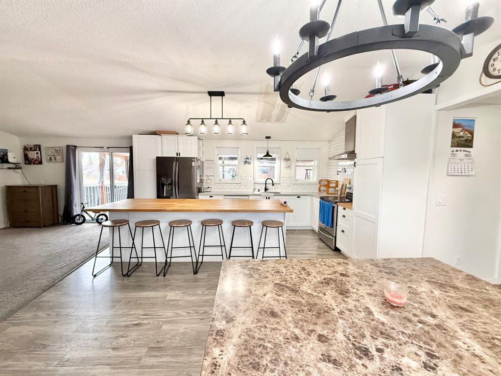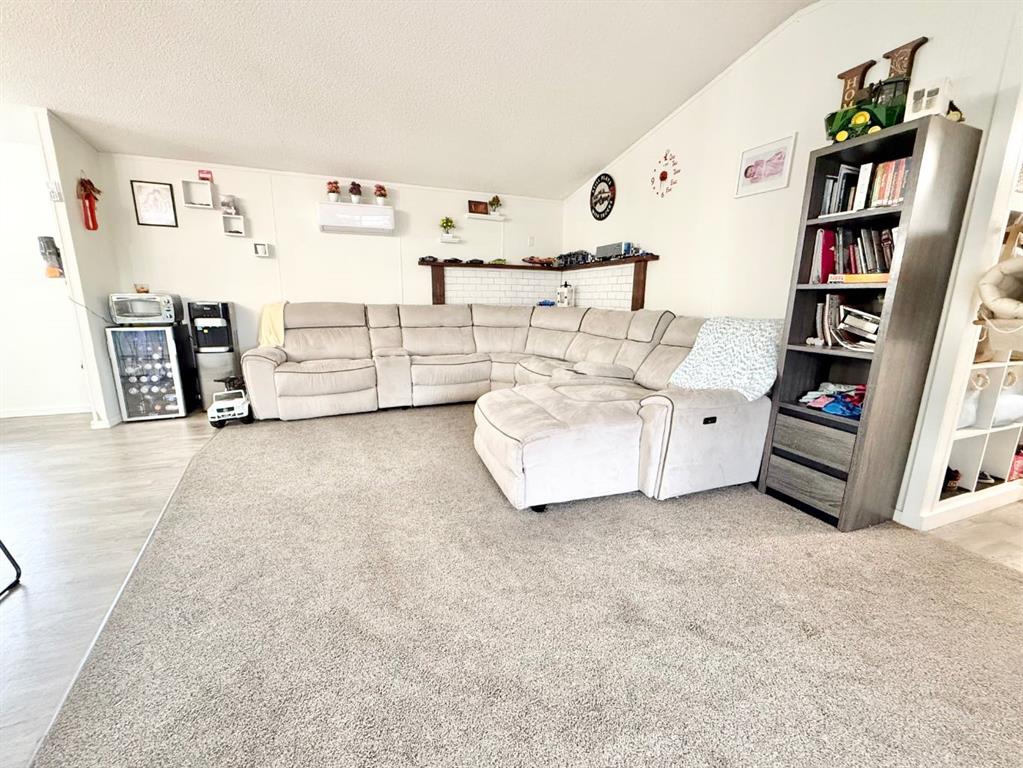 Welcome to this bright and beautiful mobile home in the friendly community of Rosemary, Alberta! Situated on owned land in a bare land condo-operated mobile home park, this property offers the benefits of ownership with the affordable condo fees that cover common area maintenance, community gardens and park management. This 3 bedroom, 2 bathroom home is the perfect blend of comfort, style and functionality. The spacious open-concept layout features a DREAM kitchen with a large island topped with butcher blo...