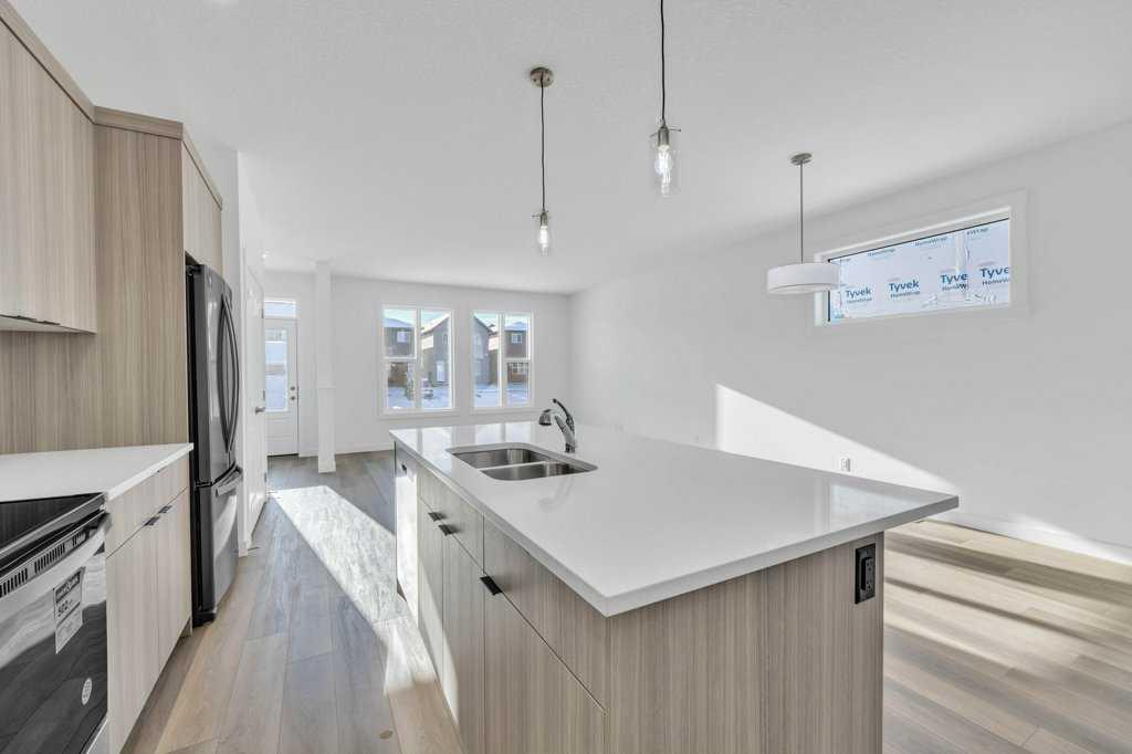 Welcome to this fully upgraded brand new single-family home located in the up-and-coming neighborhood of Chinook Gate in Airdrie. This is a fantastic opportunity to own a Brand new home without the wait! Built in 2024, this never-occupied home includes the Alberta New Home Warranty from the builder. With approximately 2632 sq ft of living space, this property features an ILLEGAL BASEMENT SUITE, a concrete parking pad, 4 bedrooms, 3.5 bathrooms, 2 living areas and a lot more to explore. The main floor boasts...