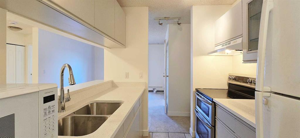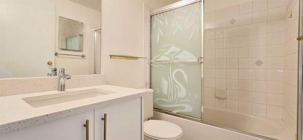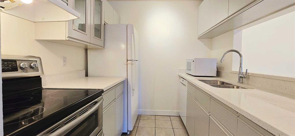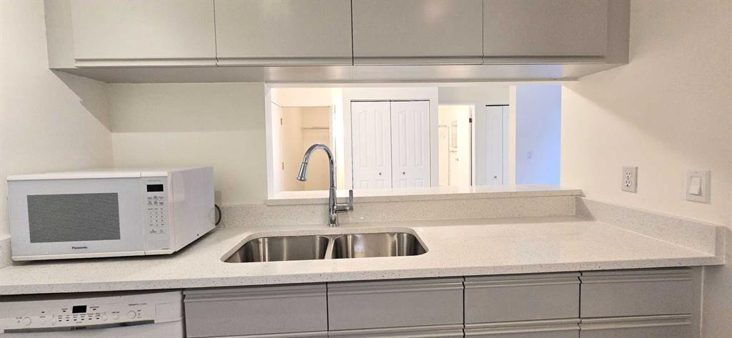 2025 refresh completed: full professional repaint plus quartz countertops in the kitchen and bath—clean, bright, and done. Ground-floor convenience speeds daily life (groceries, bikes, strollers, pets) with no elevator waits. Functional 2-bed layout with open sightlines and an extra-wide serving bar that doubles as dining or WFH. Kitchen details buyers notice: high-arc faucet, glass-front uppers, stainless range; bath carries a matching quartz vanity and classic tile surround. Neutral palette photographs we...