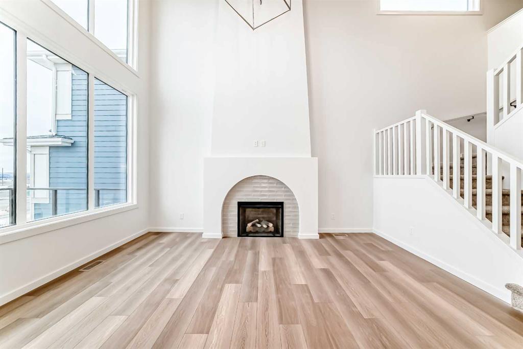 You don’t think you need a BEDROOM AND FULL BATHROOM ON THE MAIN FLOOR—until you do. Guests coming? Done. Work call? Door closed. Family staying over? No reshuffling bedrooms. It’s handled. Then you walk in—and it opens up. TWO-STOREY HEIGHT. A full wall that climbs with windows set high, pulling in light and sky. And right there, ANCHORING IT ALL, IS THE FIREPLACE—soft, slightly old-world in the way it tapers up, with an arched detail and tile inset. It doesn’t compete with the room—it gives it a focal po...
