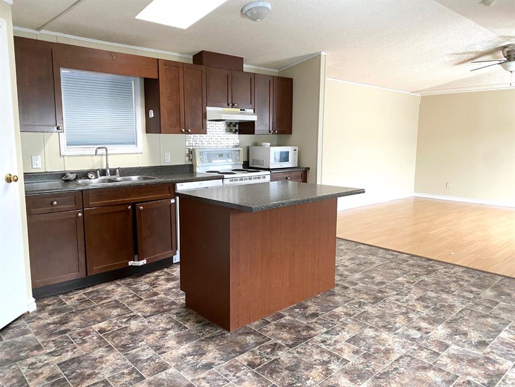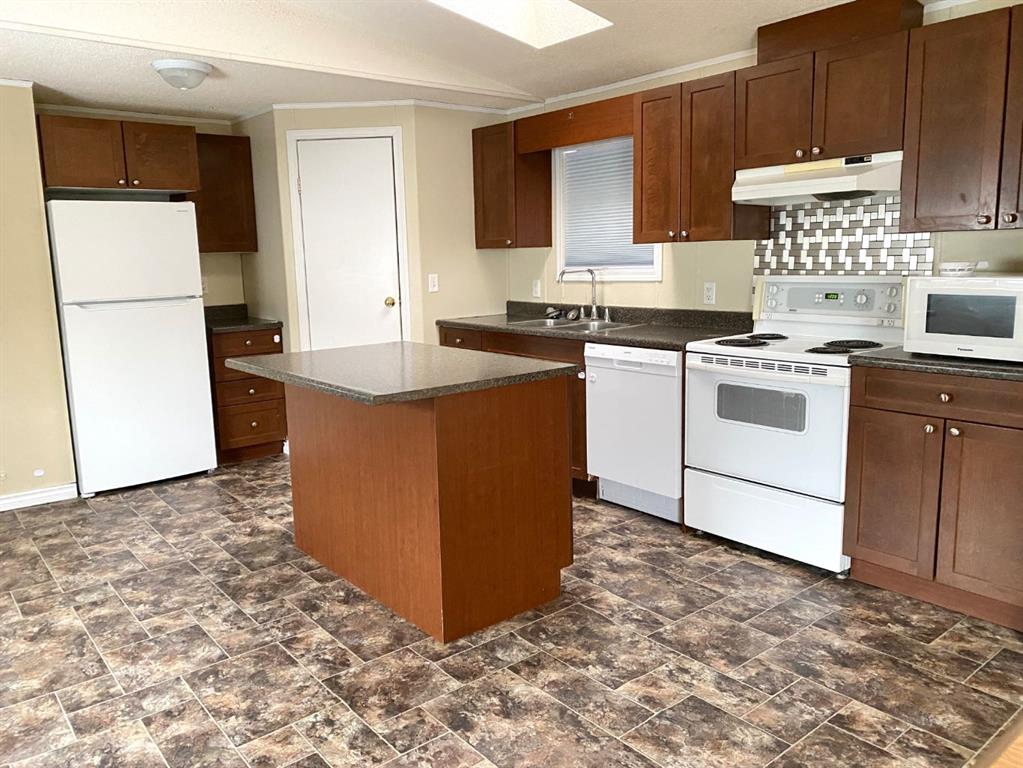 Welcome to 140 Cokerill Crescent. Backing onto Confed with no neighbours behind this home is ready for new owners. The majority of the home has laminate flooring. This mobile features 3 bedrooms and 2 full bathrooms. The kitchen is complete with an eat-up island and opens to a dining nook. Just off the kitchen you have a door leading to the yard and laundry in the hallway leading to the primary bedroom. Don't miss the opportunity to make 140 Cokerill your new home—contact us today to schedule a viewing! SO...