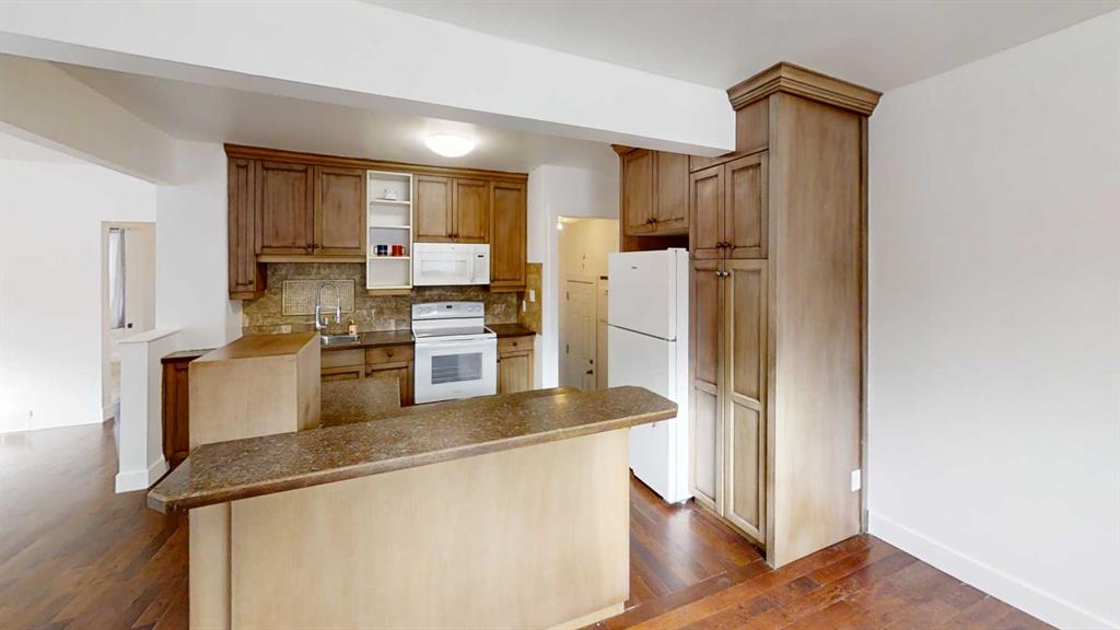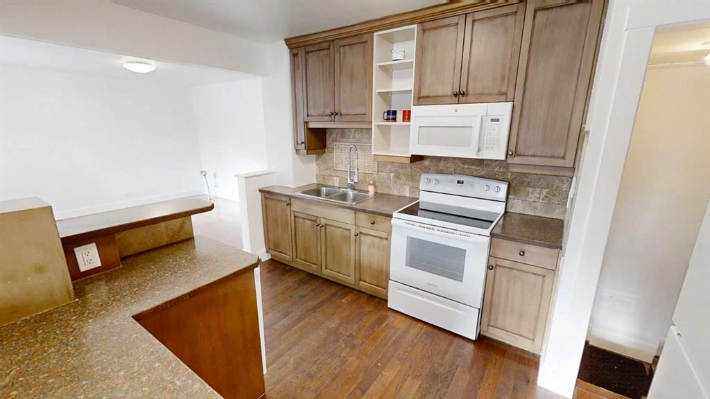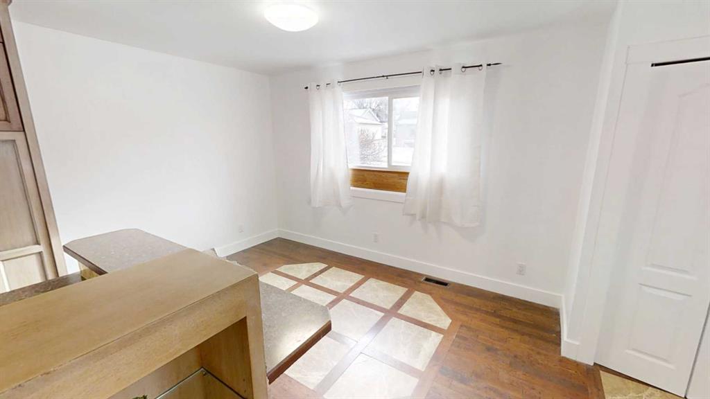 Cute 4 bedroom, 2 bathroom bungalow with detached garage conveniently located close to the hospital and schools. Main floor offers hardwood with tile inlay as well as vinyl and cork flooring, an open concept kitchen, living and dining, 2 bedrooms and 4 piece bathroom with tiled shower surround. The kitchen has been updated to include maple cabinets with eat up island and new fridge, stove and dishwasher. Downstairs offers a large bedroom with walk in closet (previously used as the primary), this room woul...