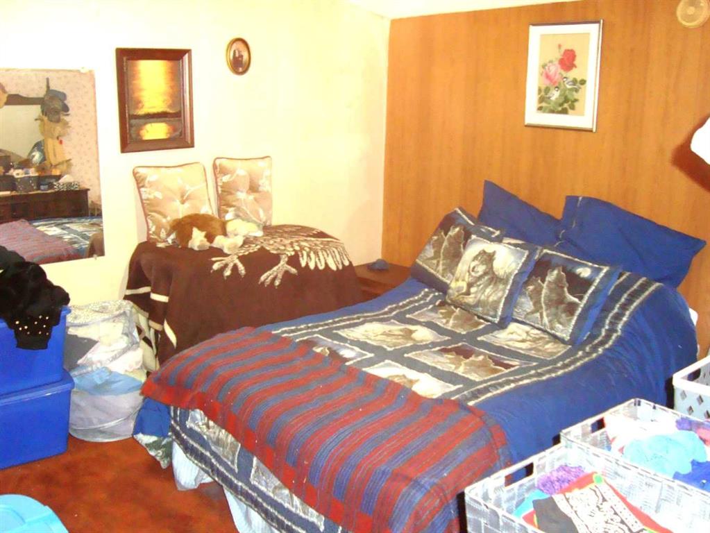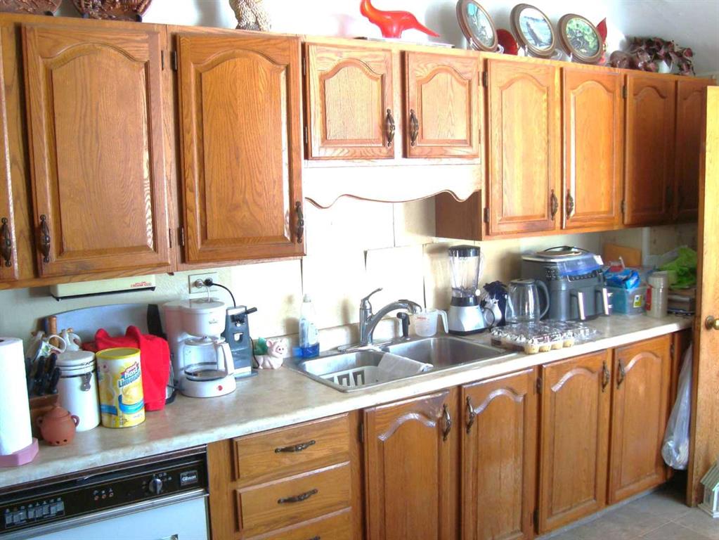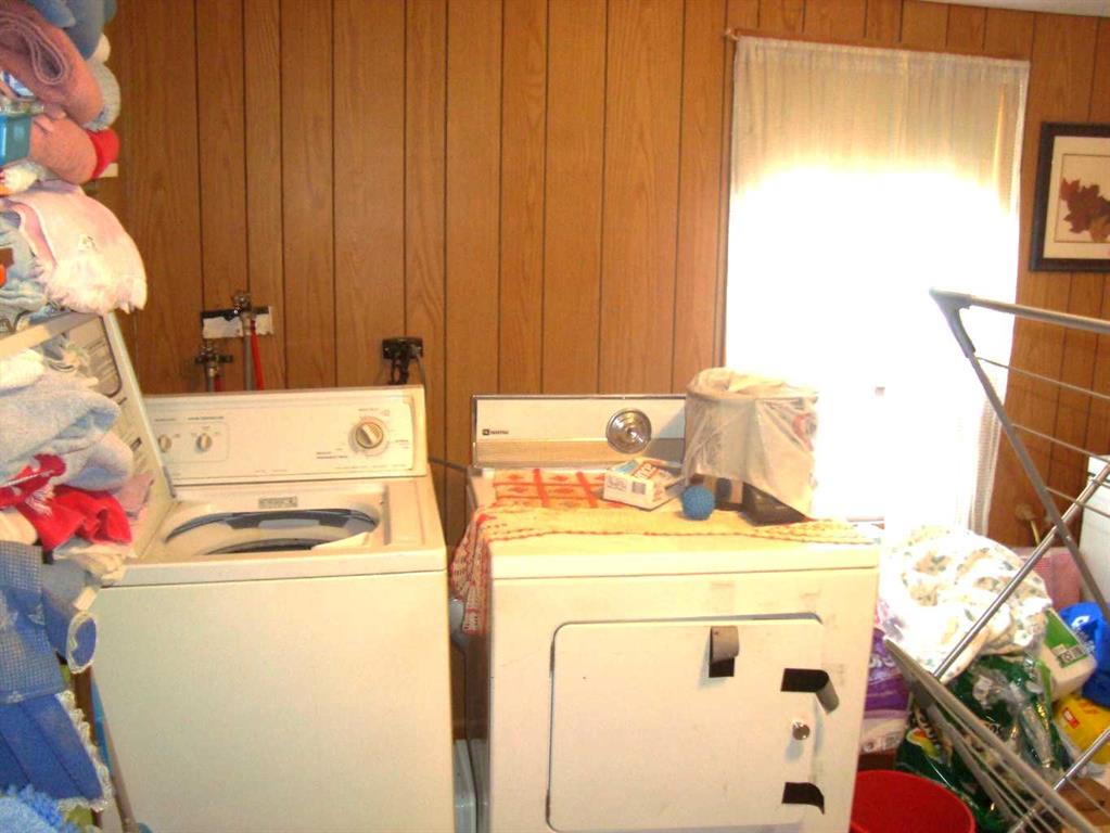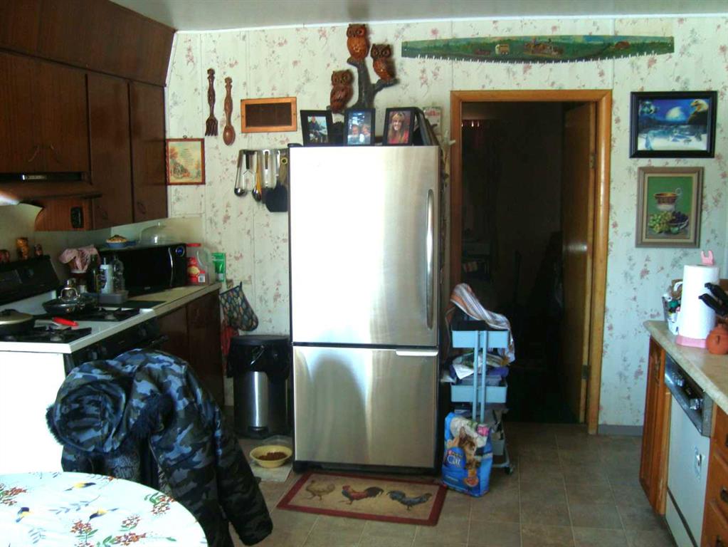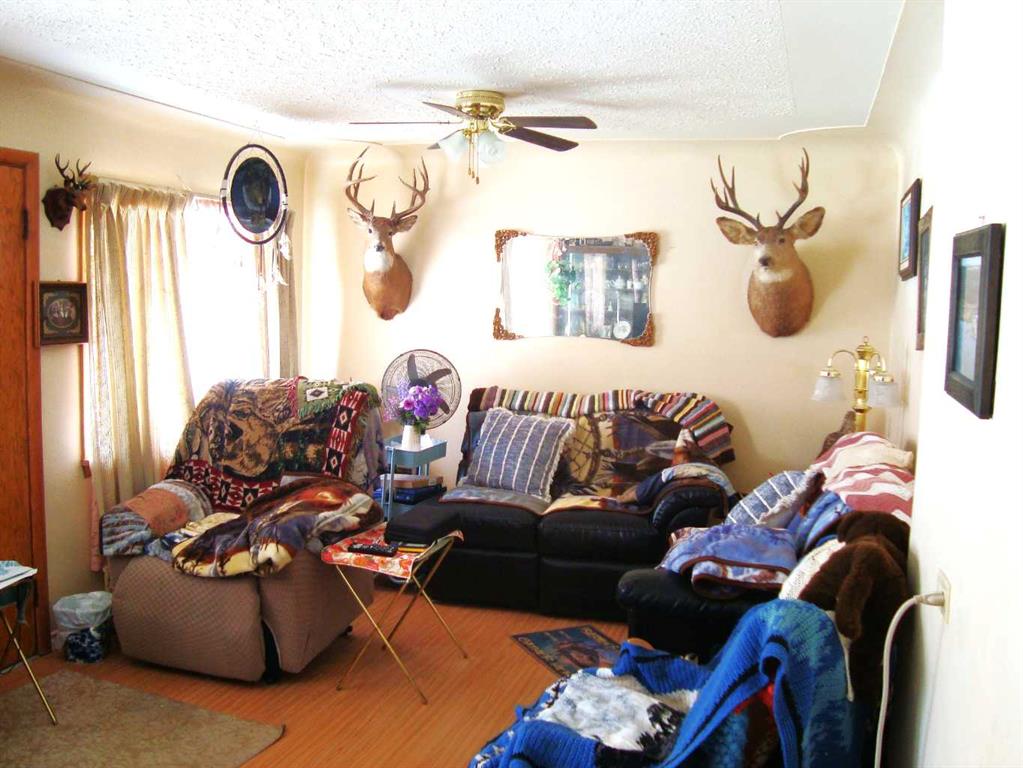 Cute and cozy with recent exterior upgrades, shingles, eavestroughing, facia and sofit. 2 Bedroom with 3rd converted to main floor laundry, west facing large living room. All 8 appliances come with the home. Mature trees and bushes on the 3 lots together. A 10 x 20 covered patio ajoined to the home, an older garage and a storage shed. Enough room to live in this while building your new home in this quite friendly community.