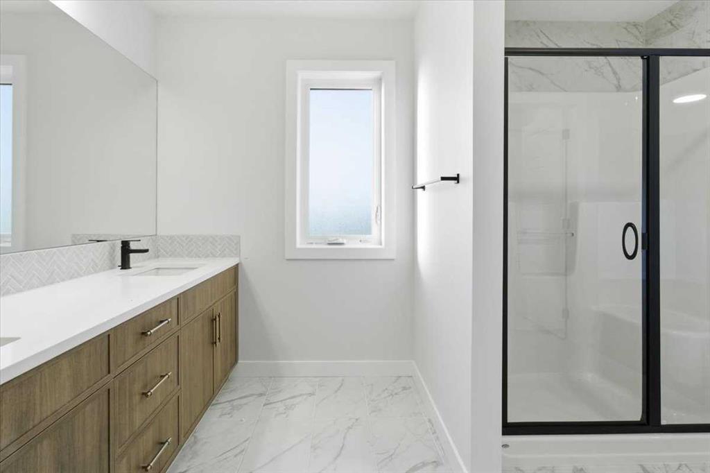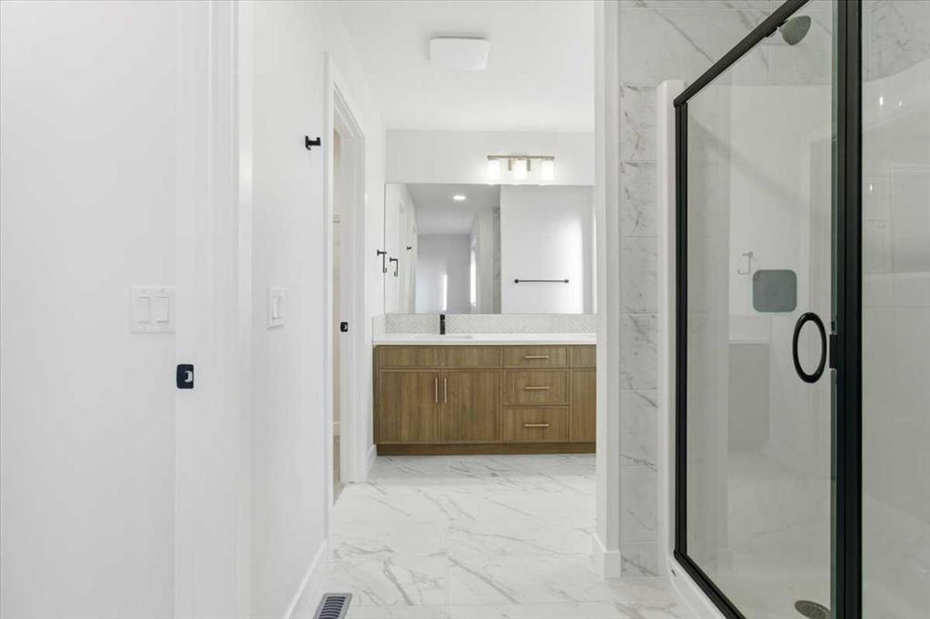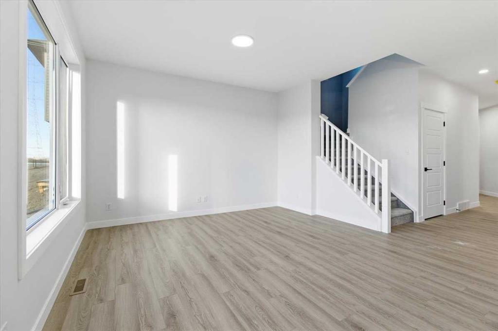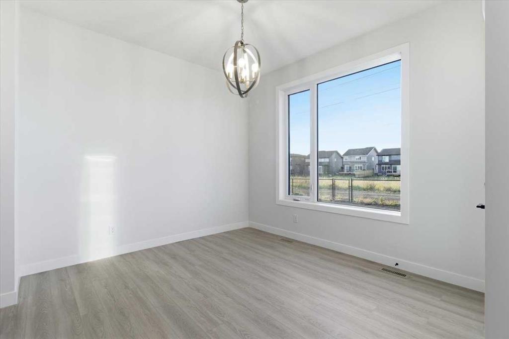Welcome to this three bedroom semi-detached home in Dawson’s Landing, Chestermere. Featuring an open floor plan with 9 ft ceilings and Luxury Vinyl Plank flooring throughout the main level, this home features a trendy kitchen with quartz countertops, upgraded gas range and walk through pantry. The main floor includes a flex room and SEPARATE SIDE ENTRANCE for many future basement development options. Upstairs, there is a central bonus room between the primary suite and two additional bedrooms, all with wal...