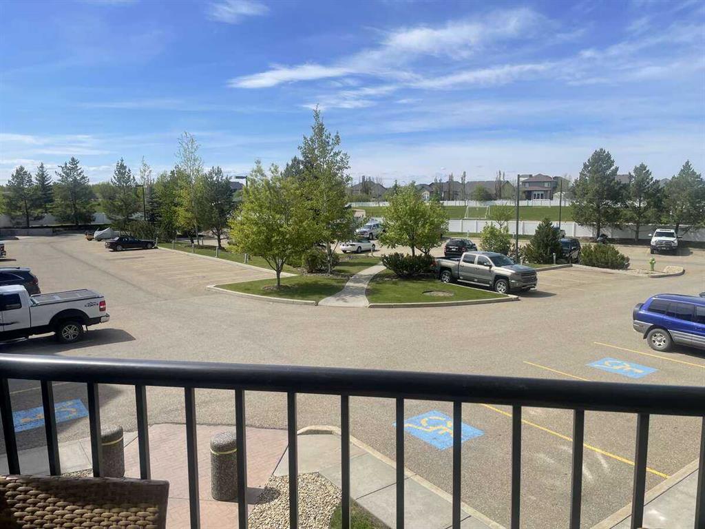 For more information, please click the "More Information" button. West facing overlooking open scoccer field 2 bedroom + den, second floor unit close to elevators located in Sylvan Lake! Open concept with 9-foot ceilings and fireplace, private deck c/w new natural gas bar ba que, under counter reverse osmosis filter and 4 new stainless-steel appliances, bar fridge, stackable washer/dryer in its own storage room, and a primary bedroom with walk-through closet into a 4PC ensuite. This unit comes with 1 assig...