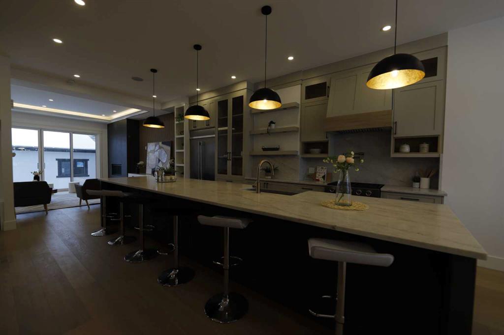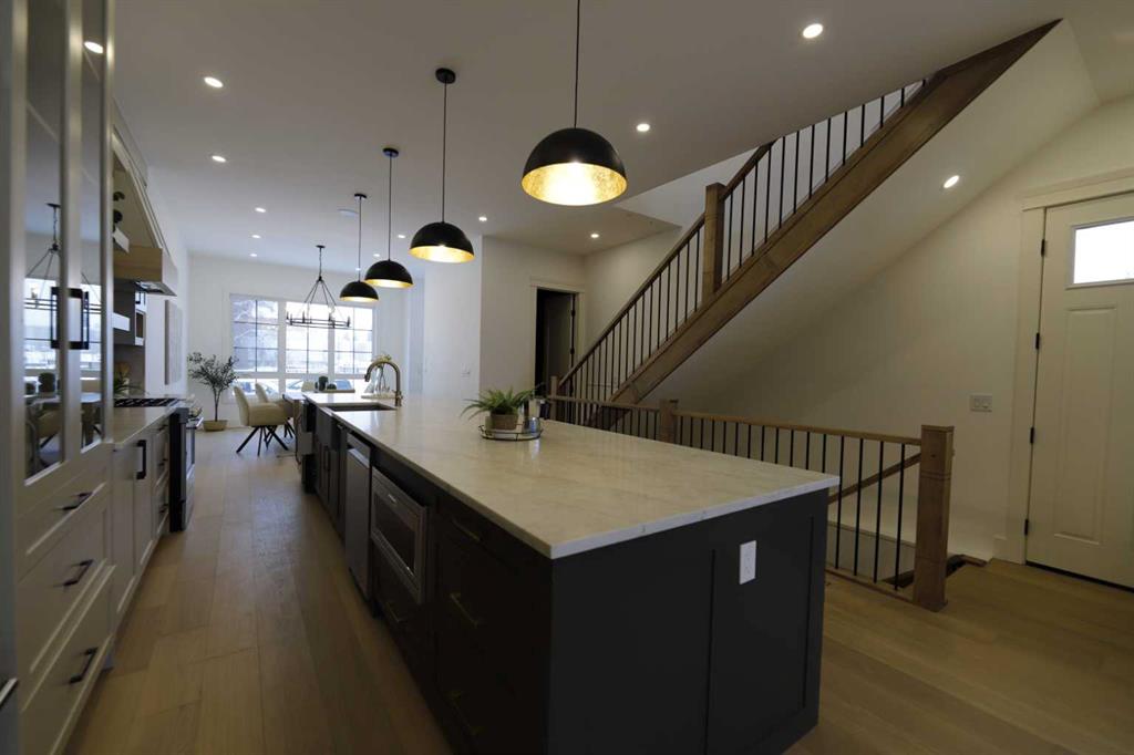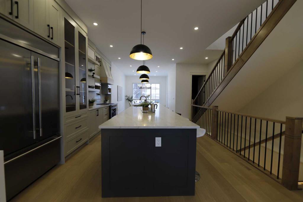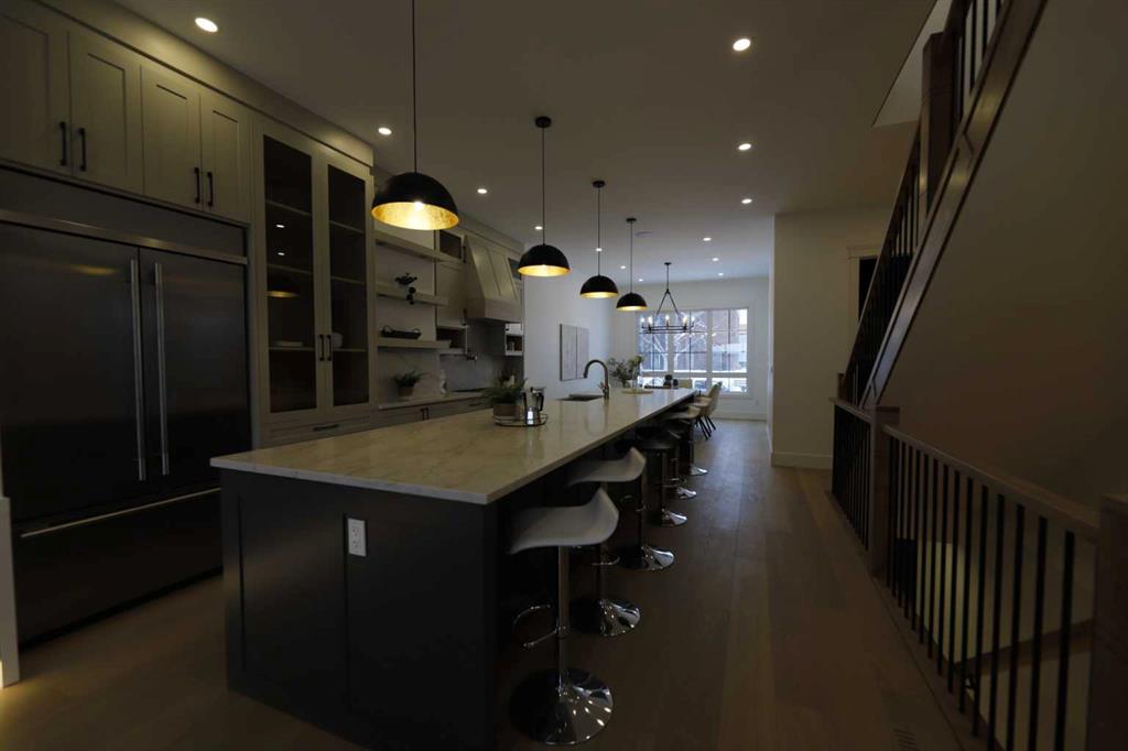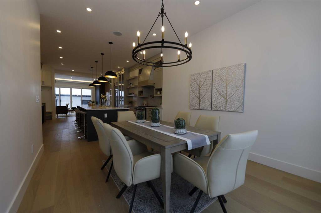 Welcome to 2323 53 Avenue SW — A brand new home with over 3000 sqft of developed space with south facing backyard that brings you luxury, everyday comfort, and convenience. You're welcomed by a bright dining area with a chandelier and a large window for natural light that connects to the main floor featuring a 10-foot ceiling, a well-equipped gourmet kitchen comes with a 15 foot island, quartz countertops, full height cabinetry , and a premium Kitchen Aid appliance package. The open concept connects the kit...