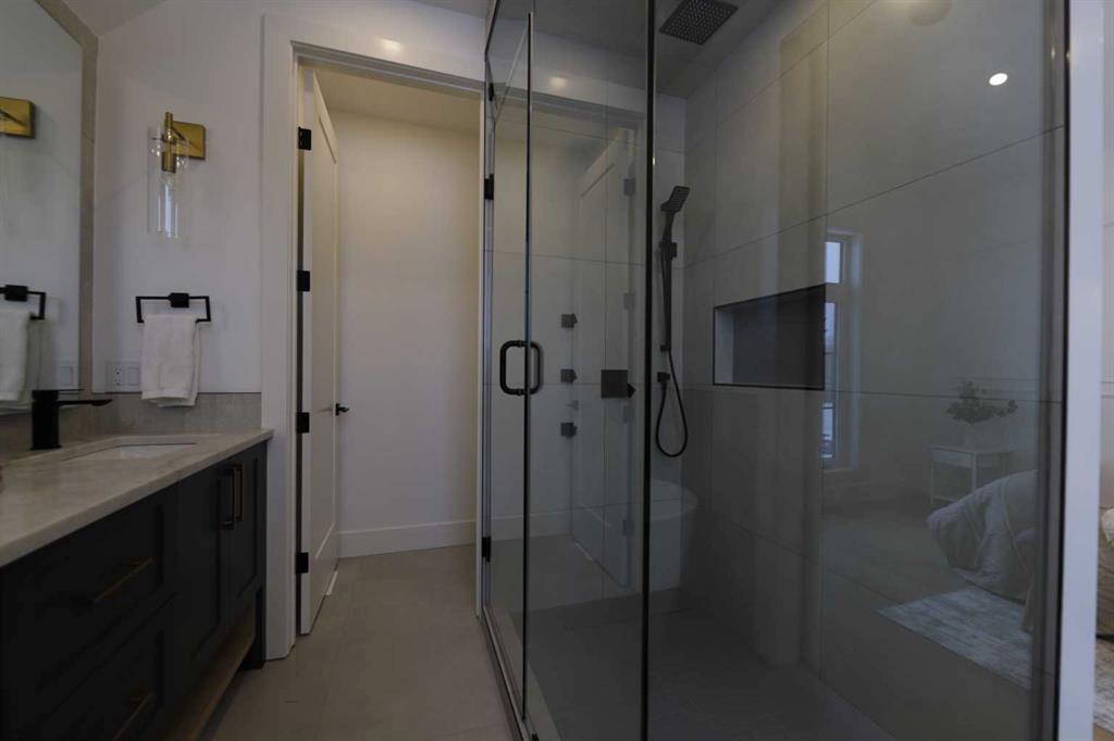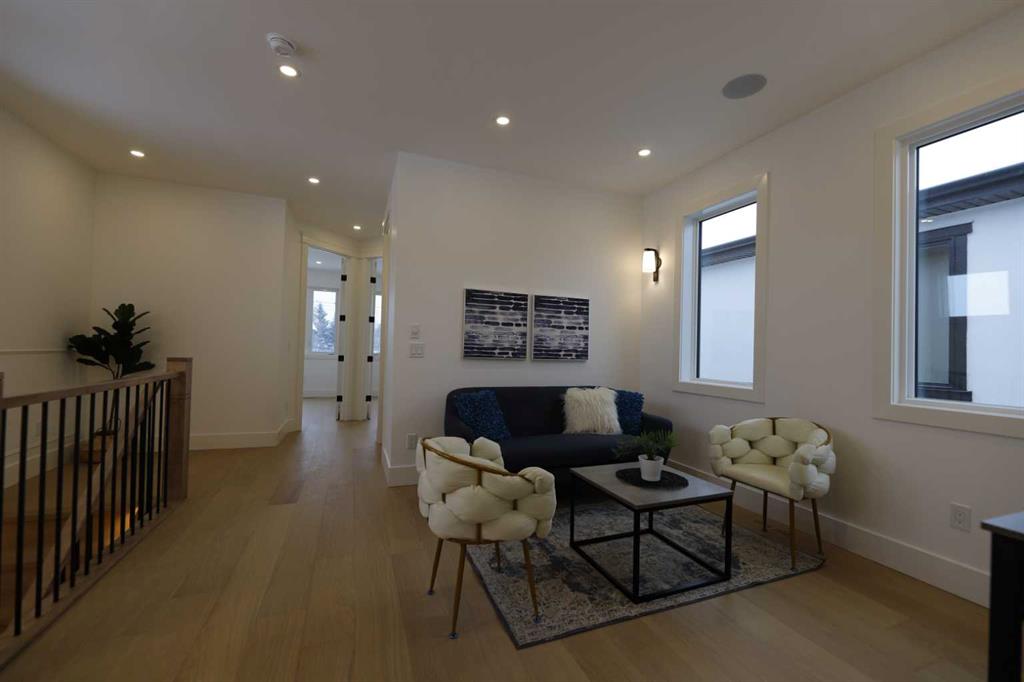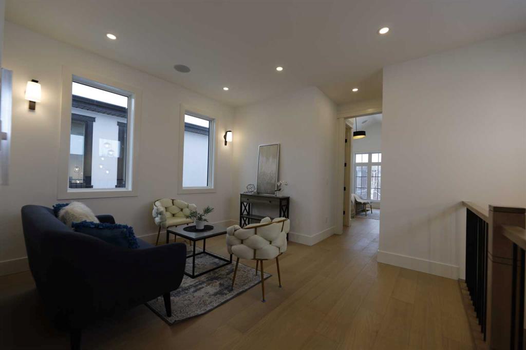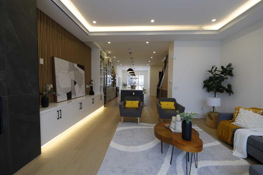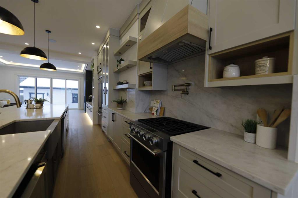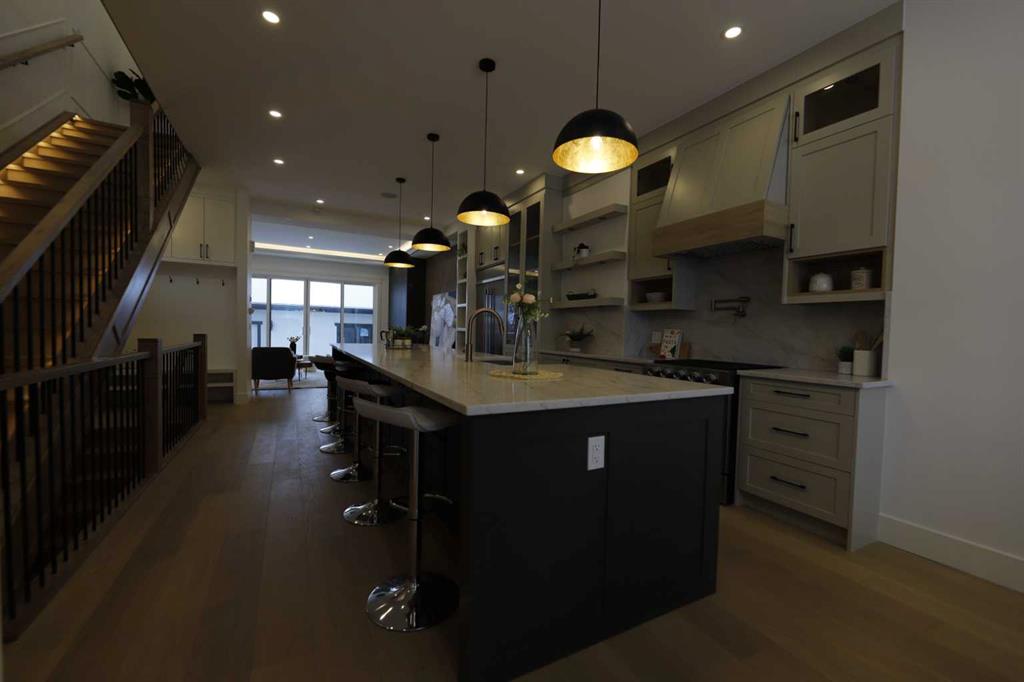 Welcome to 2323 53 Avenue SW — A brand new home with over 3000 sqft of developed space with south facing backyard that brings you luxury, everyday comfort, and convenience. You're welcomed by a bright dining area with a chandelier and a large window for natural light that connects to the main floor featuring a 10-foot ceiling, a well-equipped gourmet kitchen comes with a 15 foot island, quartz countertops, full height cabinetry , and a premium Kitchen Aid appliance package. The open concept connects the kit...