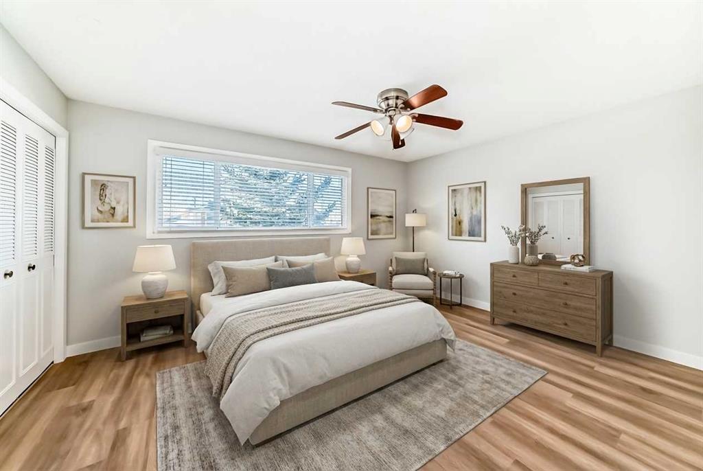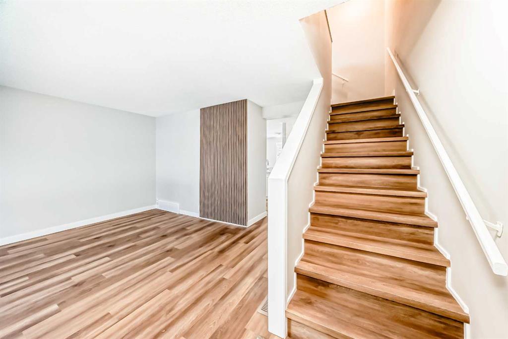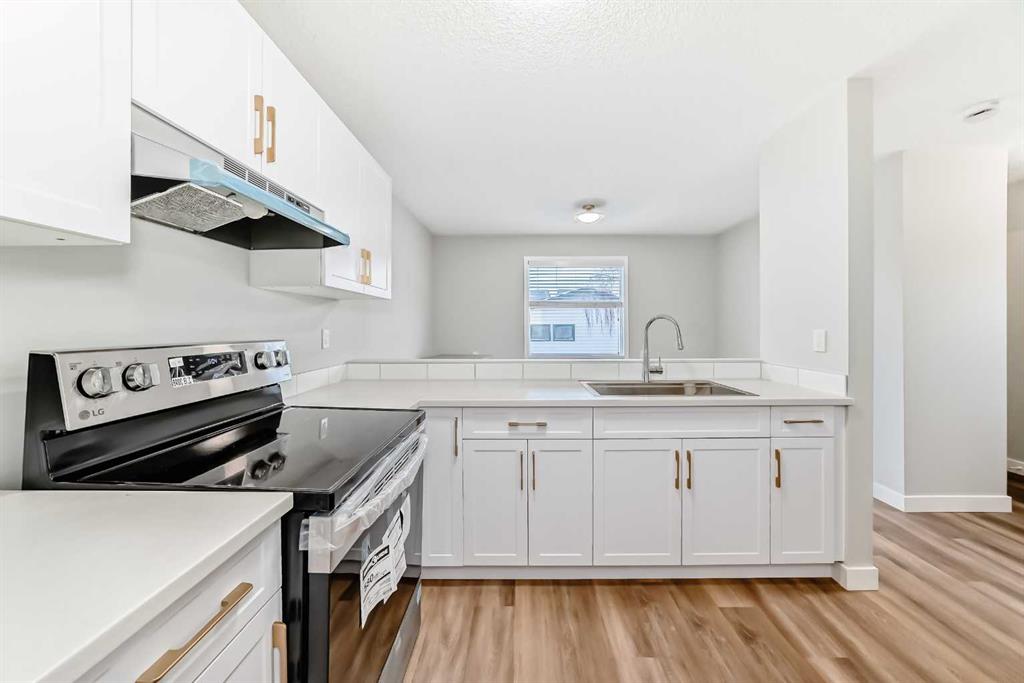 Welcome to this extensively renovated half duplex, ideally located on a quiet cul-de-sac in Airdrie. This home has seen numerous upgrades over the years, offering modern finishes and peace of mind for the next owner. Major updates include new windows (2010) and exterior doors (2015). In 2025, the home underwent a comprehensive renovation featuring custom vinyl plank flooring on the main and upper levels, a completely updated kitchen with new cabinets, sink, and countertops, and a refreshed main floor pow...