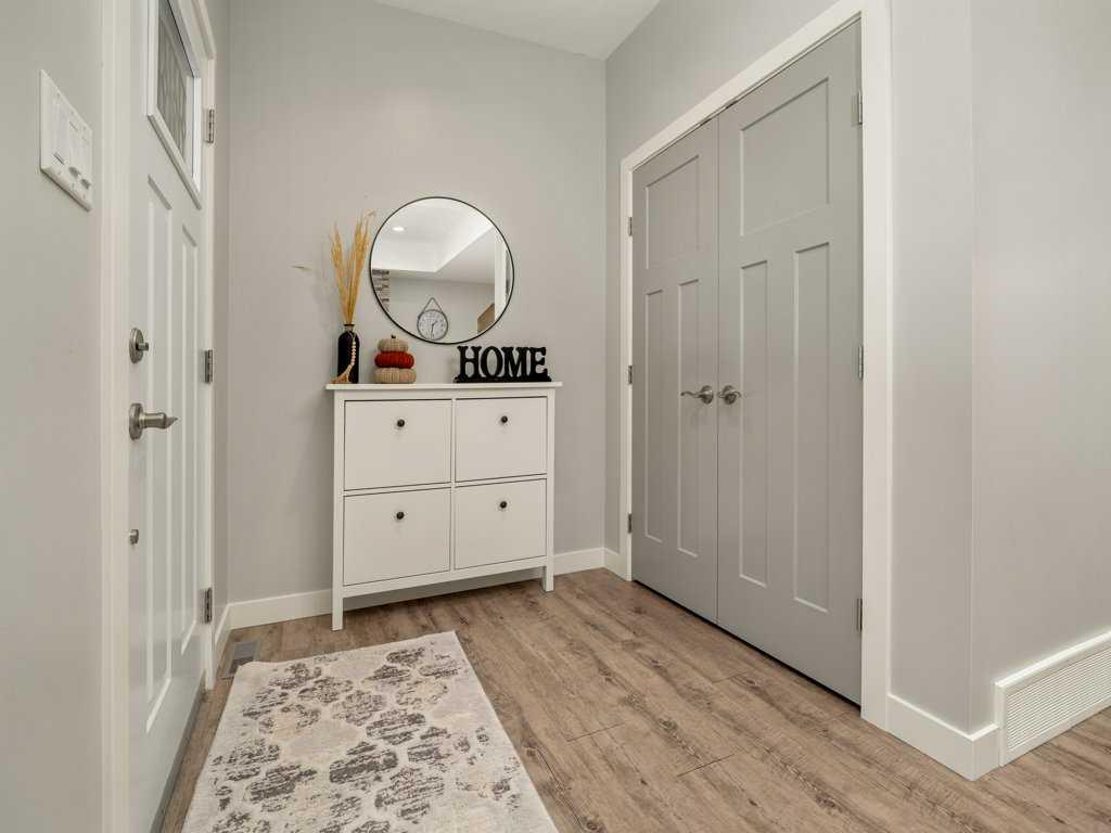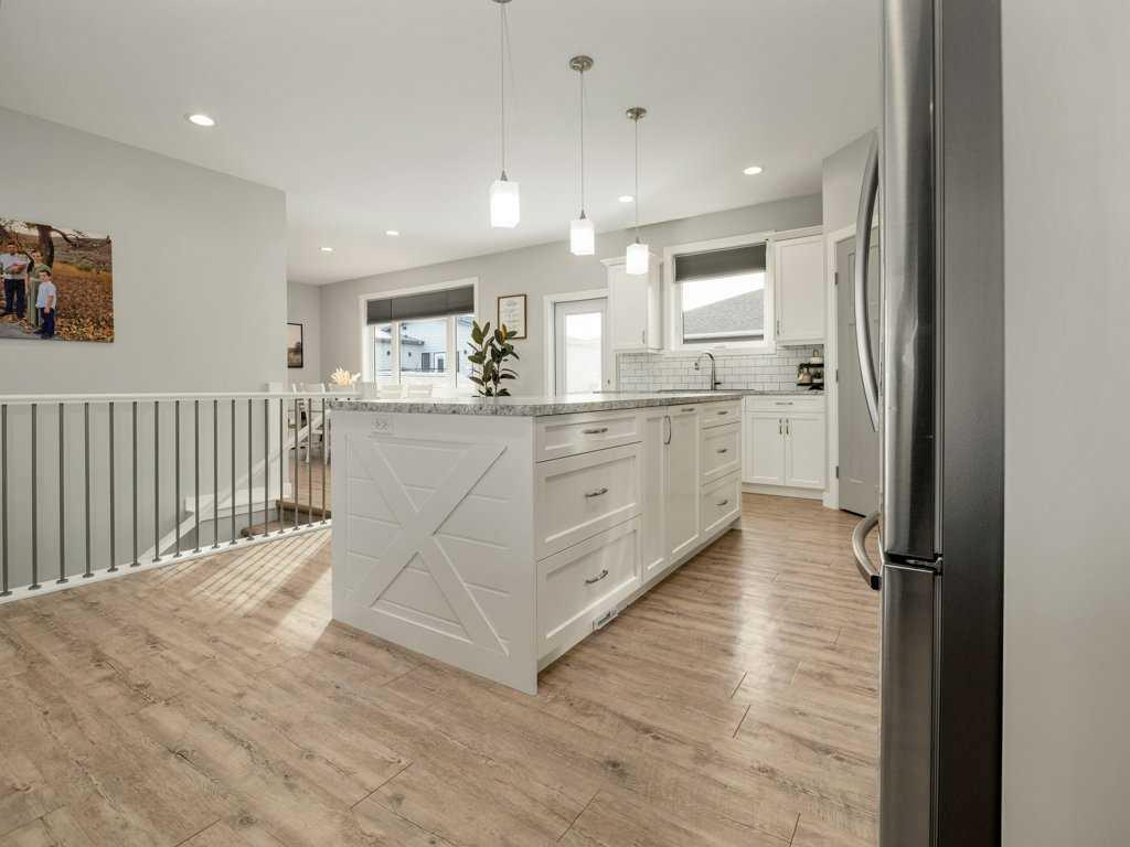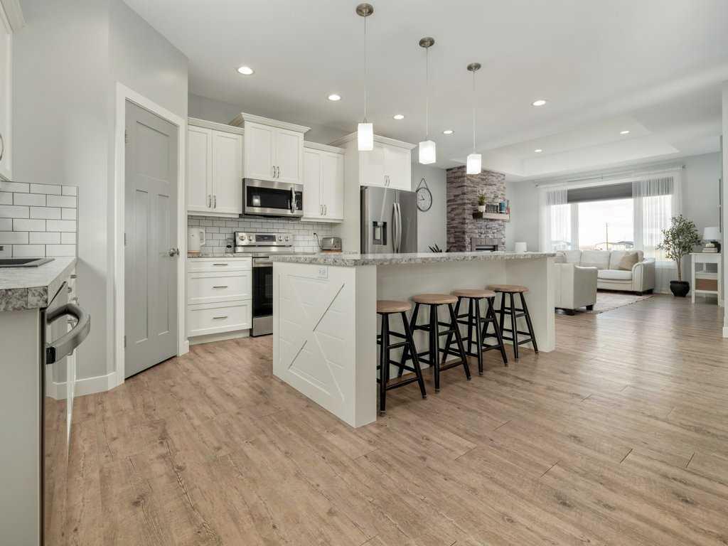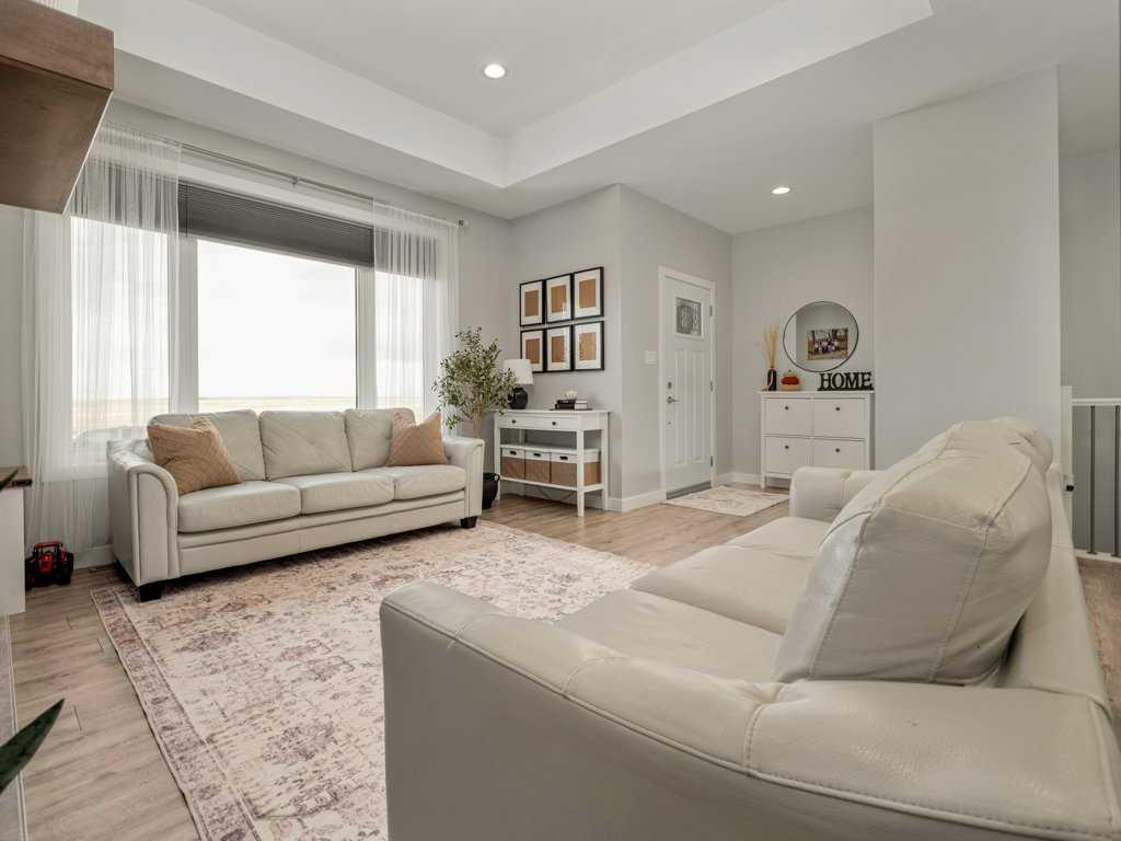 Just 25-30 minutes from Lethbridge, this one-of-a-kind home offers small-town charm with modern comfort. The bright open floor plan features a tray ceiling, pot lights, and a gas fireplace with beautiful stonework. The white kitchen includes a large island, stainless appliances, and a durable black sink. Enjoy the convenience of main floor laundry, perfect for seniors or anyone who prefers single-level living. The main floor also includes a spacious primary suite with walk-in closet and ensuite featuring a ...