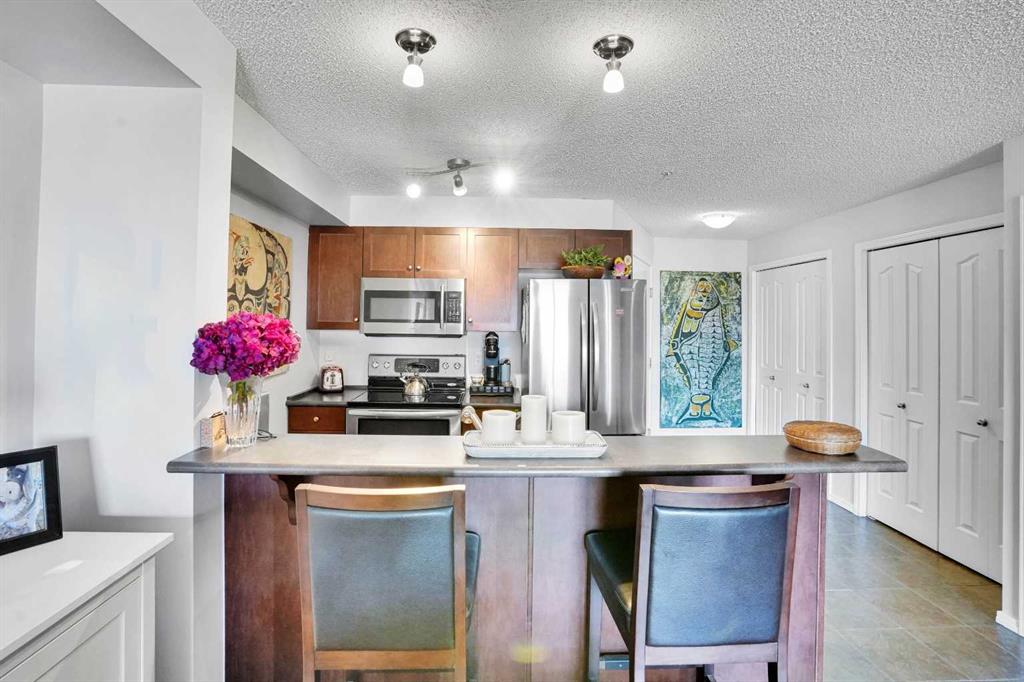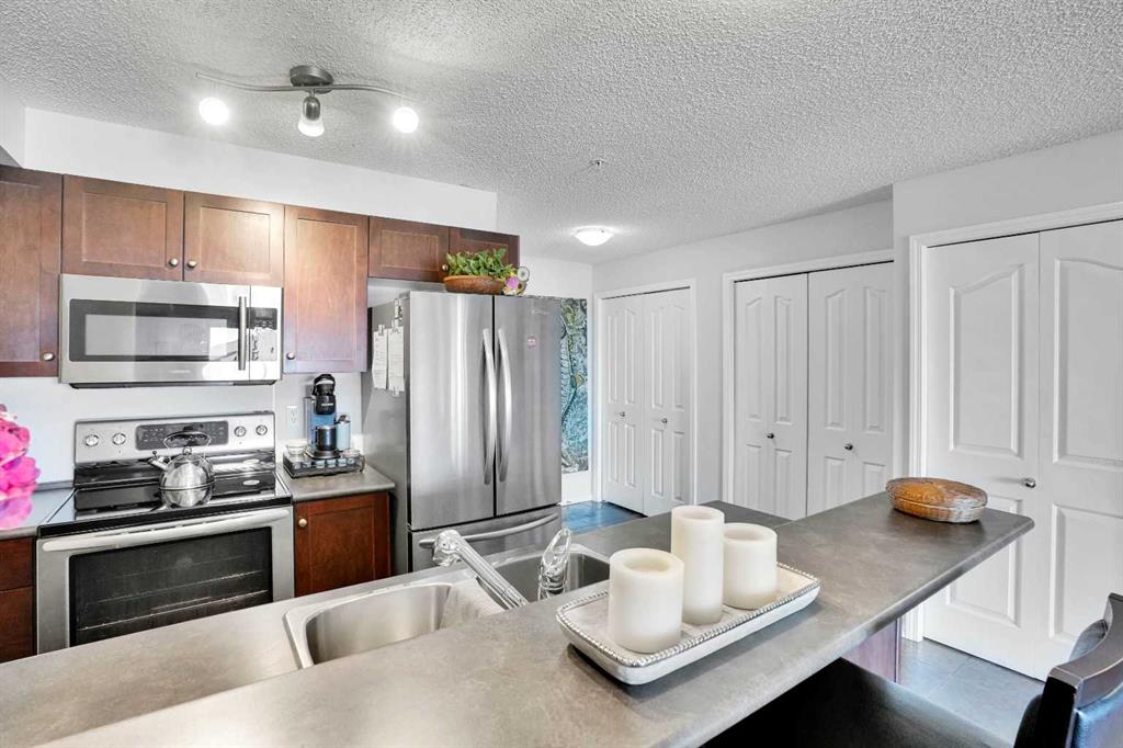 Welcome Home! This sweet condo is absolutely perfect for those who want a peaceful place to call their own. You can feel it as soon as you step into the suite. This corner suite overlooks walking paths, community spaces and greenery and the east exposure guarantees bright mornings. A generous size balcony is accessed through sliding patio doors from the living room: add some patio furniture, then sit back and enjoy the view. Tastefully decorated and well kept with dark stained wooden cabinetry, ceramic flo...