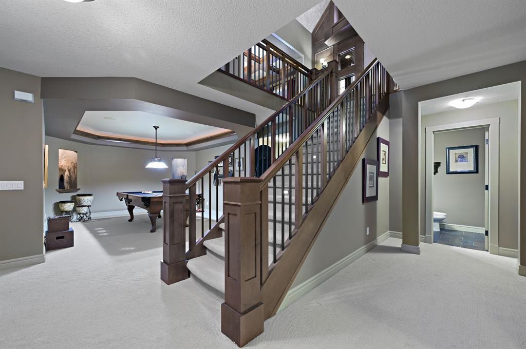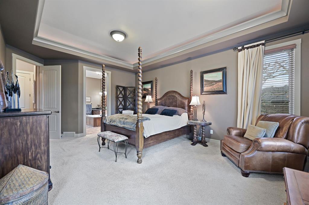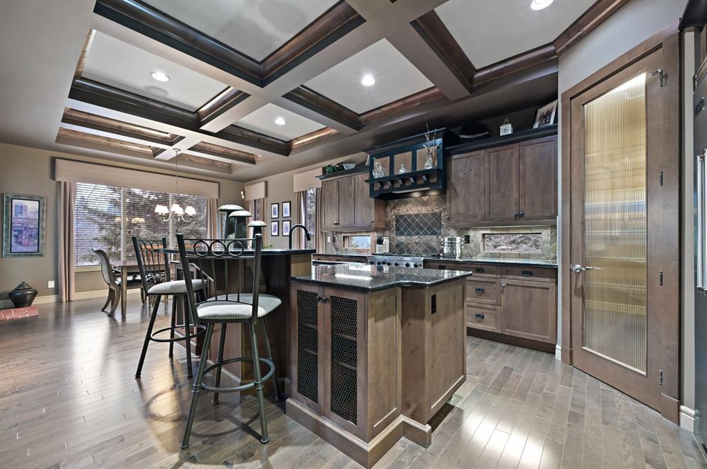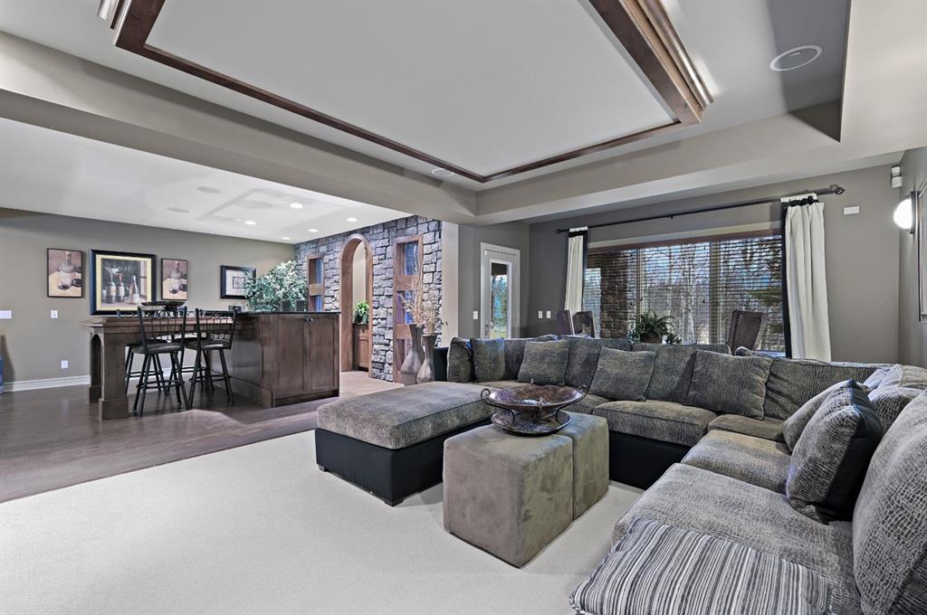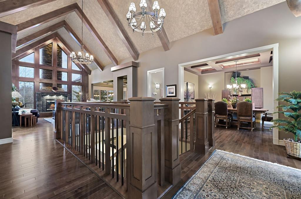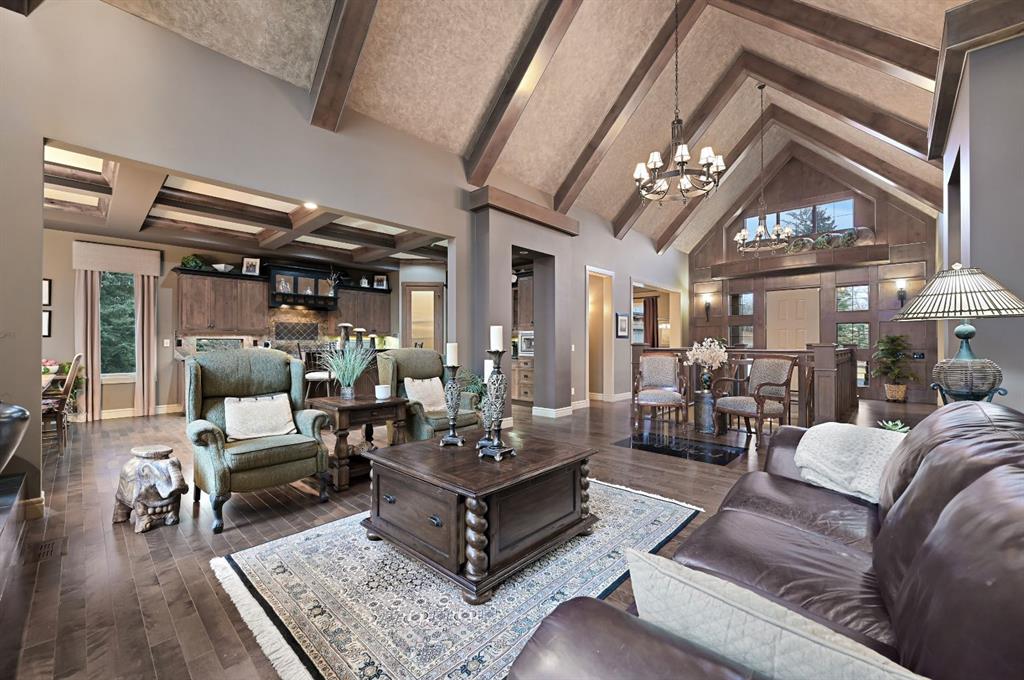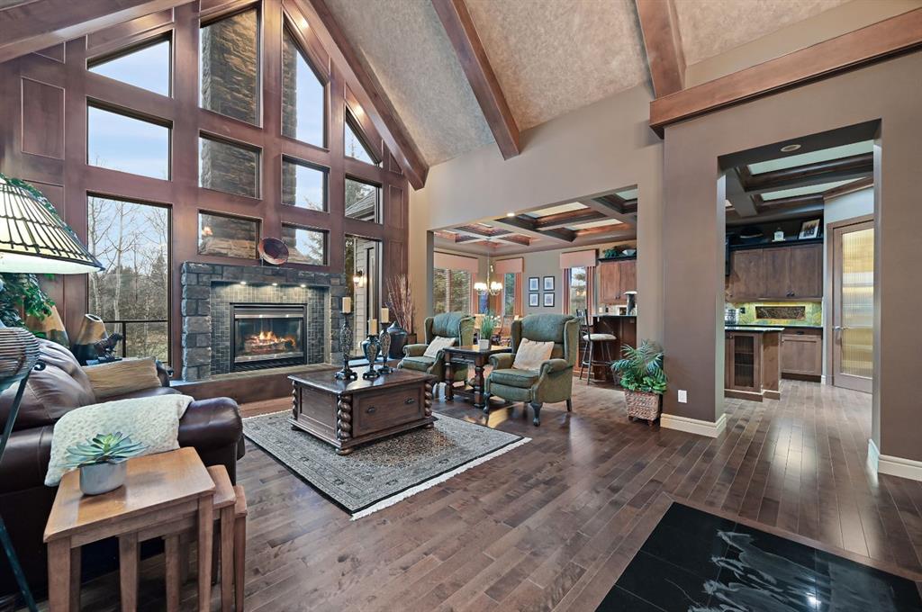 Beautiful Executive Walkout Bungalow with West Back Yard onto the prestigious Priddis Greens Golf Course! This former Show home features Extensive upgrades on the exterior with Stone Features that just say Wow! Step into a large foyer with High Vaulted ceilings accented by Beams and custom paint on the ceiling! The view to the feature back wall is amazing with decorative wood features, a warm fireplace and windows accenting this high wall and ceiling. The main floor office is a large room with extensive b...