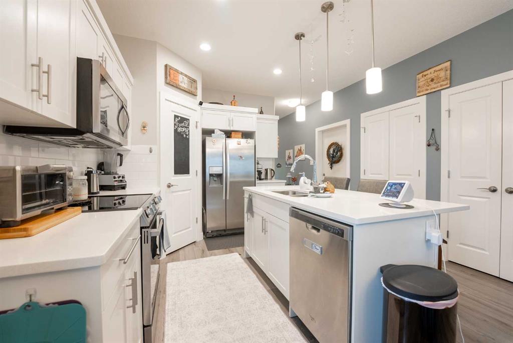Welcome to Park Crossings, where comfort, style, and convenience meet in this immaculate end-unit bungalow condo built in 2016. Step inside to a bright, open main floor featuring a modern kitchen with quartz countertops, stainless steel appliances, corner pantry, and a spacious island - perfect for entertaining. The dining and living areas flow seamlessly together, centered around a modern gas fireplace for cozy evenings in. The primary suite offers a walk-in closet, a beautiful ensuite with a soaker tub an...