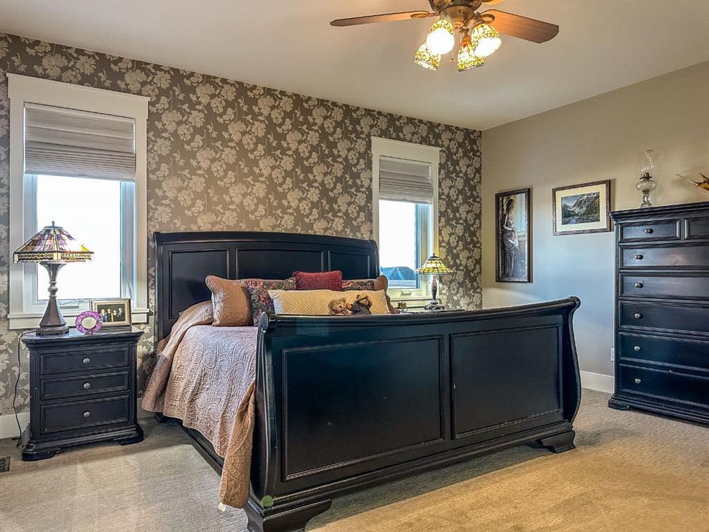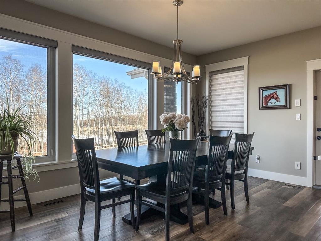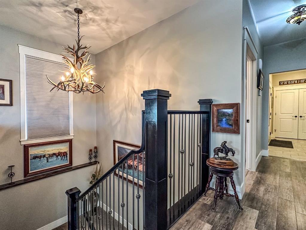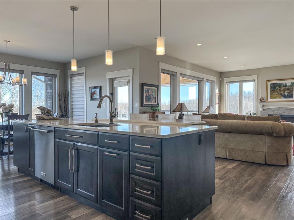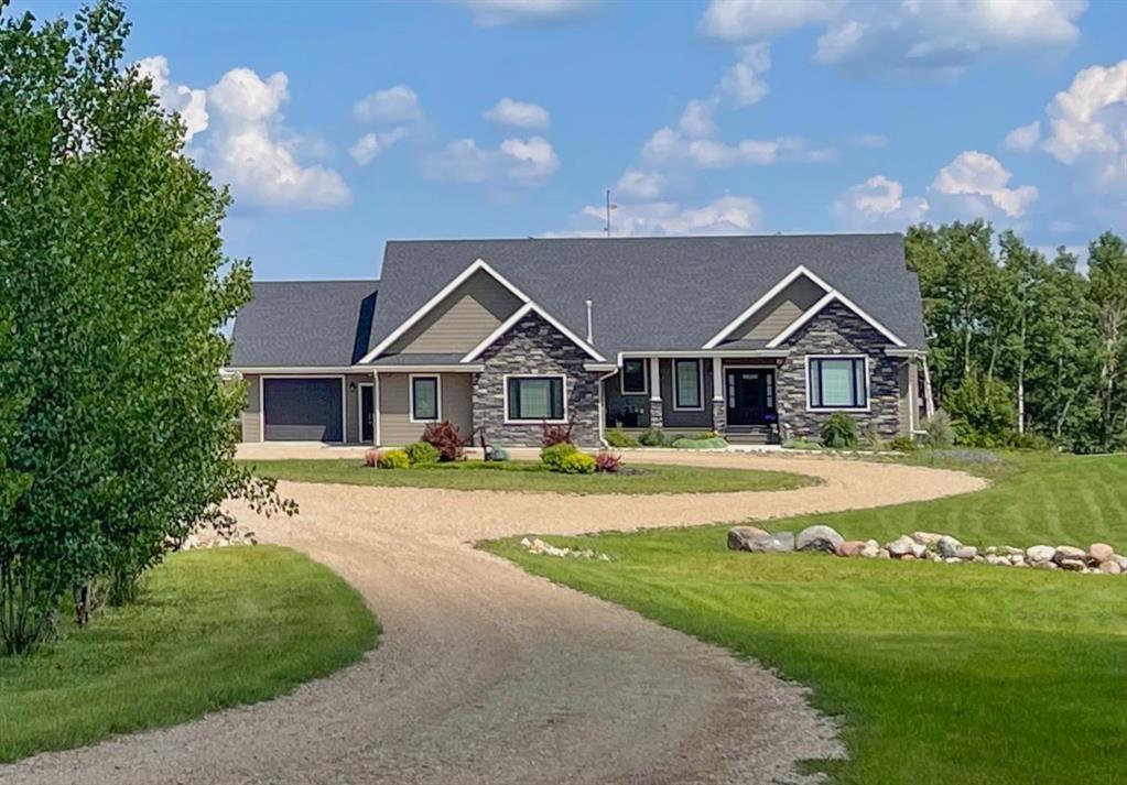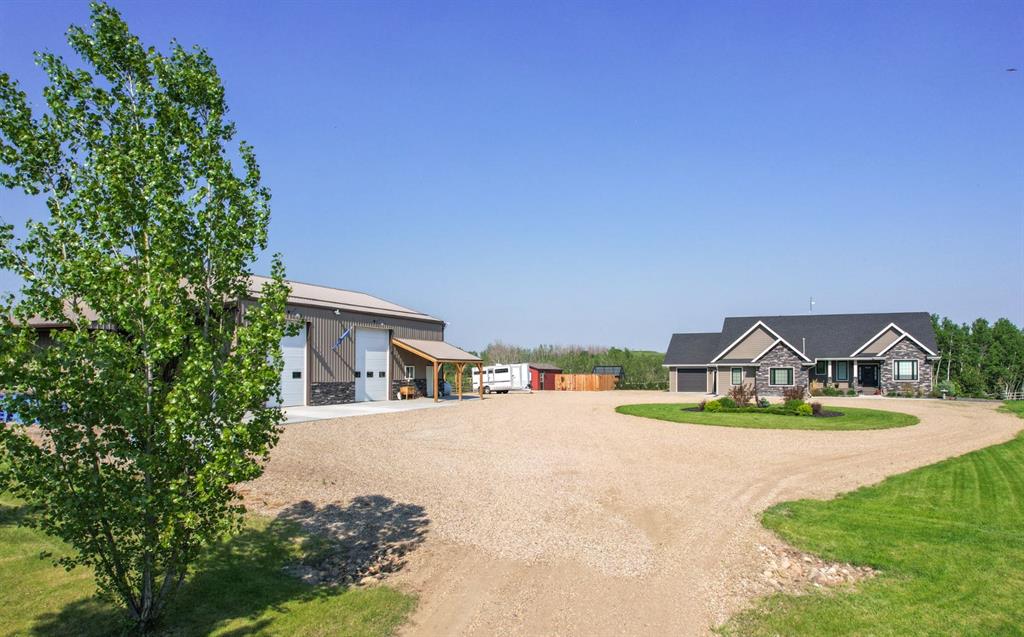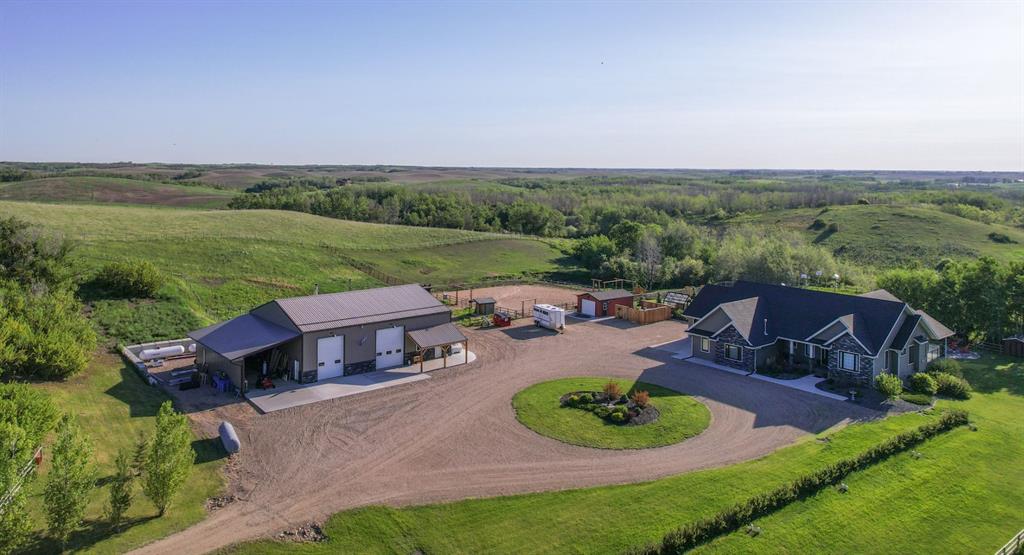 WELCOME TO ALBERTA! On offer is an immaculate acreage nestled in the hills of beautiful No. 6 Stettler County for those who want to spend their days in the epitome of western luxury. At over 4100 square feet of living space between the main level and walkout basement, no expense was spared in its premium finishes and masterful design. The grand entry makes a statement showcasing outstanding works of art, welcoming you through into the open concept kitchen and living area. Be awestruck by the gorgeous custom...