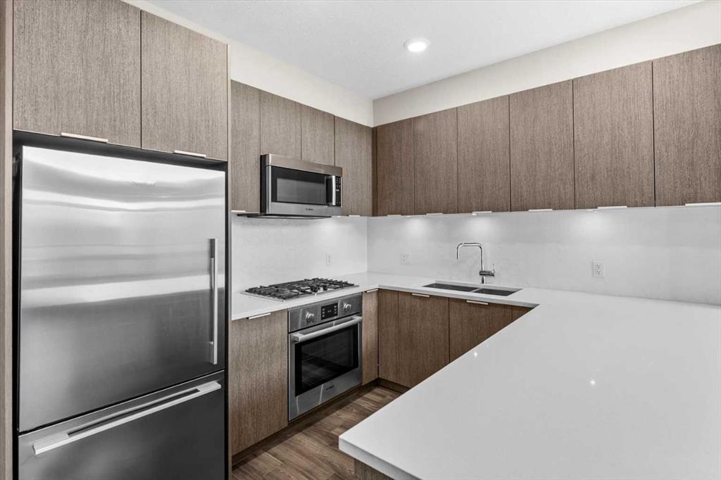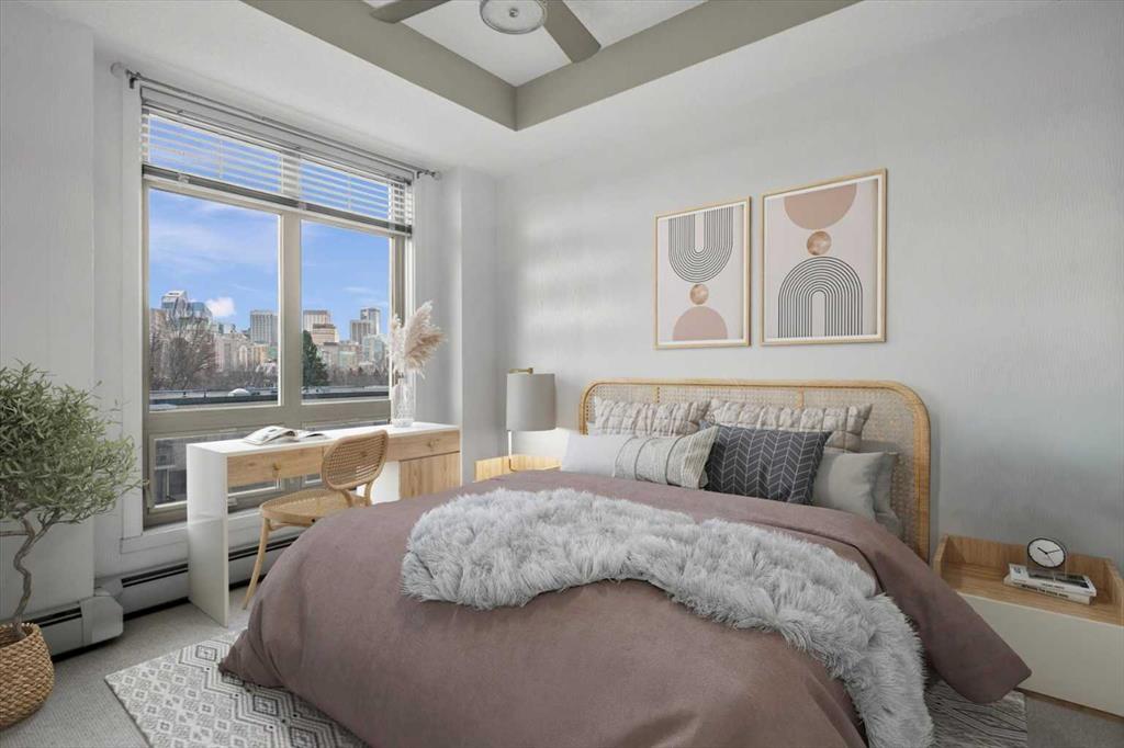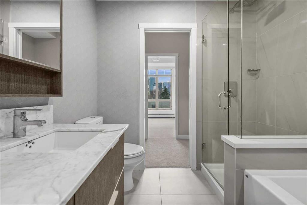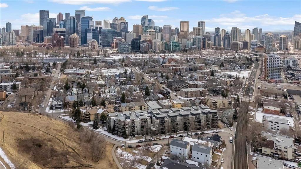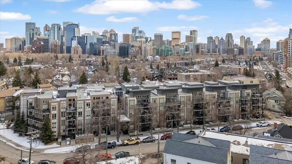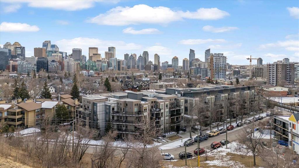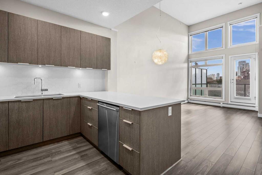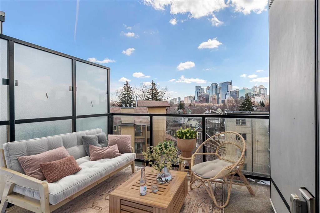 There's a version of city living that gets talked about a lot — and then there's the version you actually get to live. This is the latter. Perched on the top floor of The Ven with views of Calgary's downtown skyline, this one-bedroom penthouse sits in the heart of Sunnyside, steps from Kensington and one of Calgary's most walkable communities. Fourteen-foot vaulted ceilings, massive windows that fill the space with light, and a south-facing balcony so generous it becomes a room of its own. Inside, the open-...