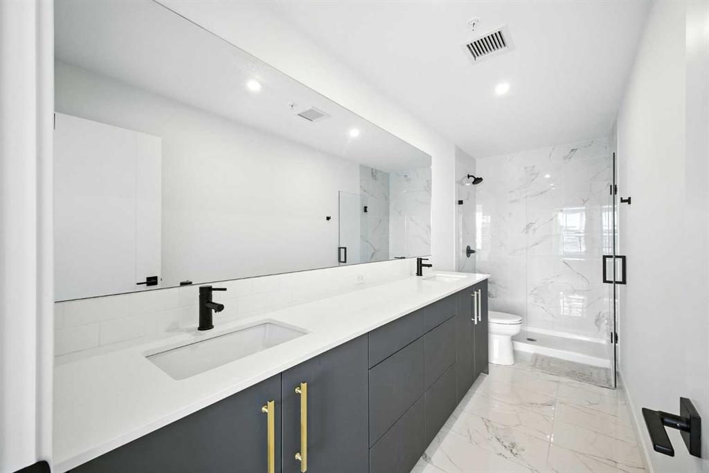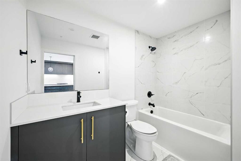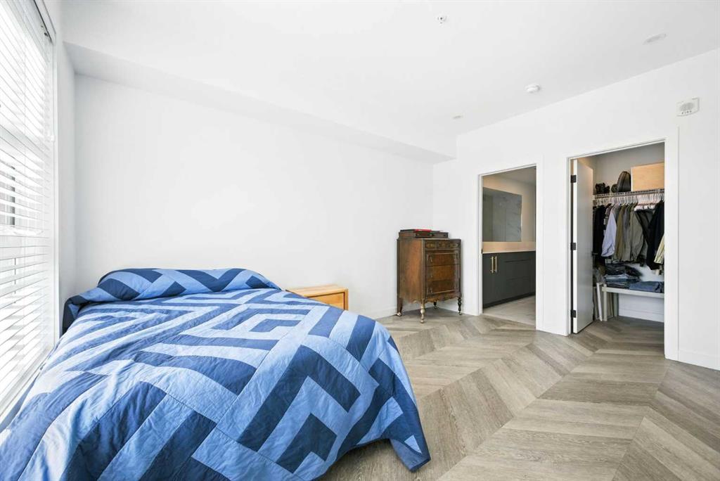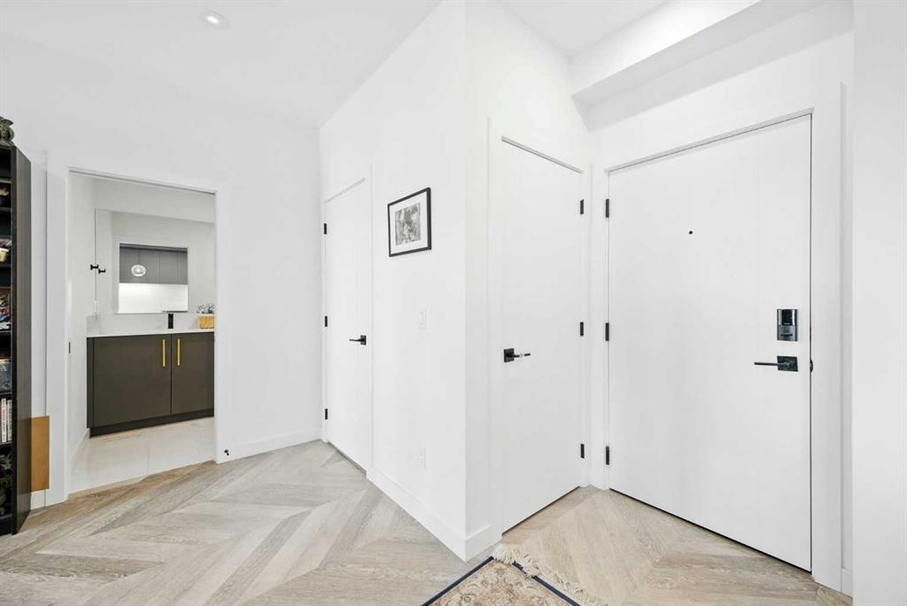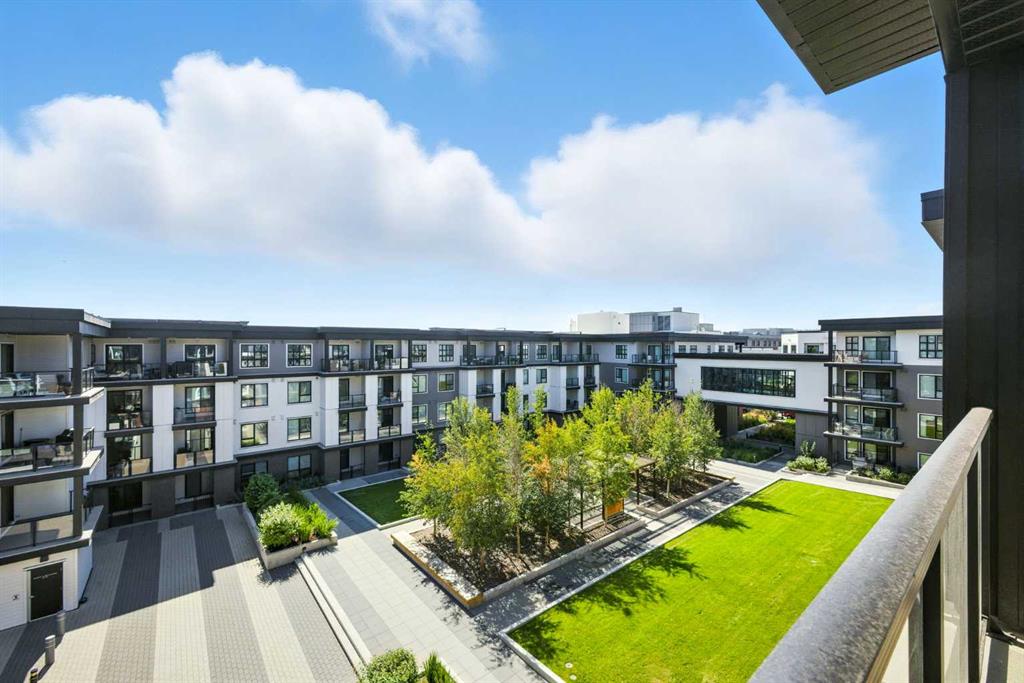 Bright top floor living with a quiet courtyard view and a southeast facing balcony. This 900 square foot 2 bedroom 2 bathroom home in Esquire offers high ceilings, a smart layout, and a clean modern finish package. The kitchen is built for real cooking with ceiling height cabinetry, quartz countertops, tile backsplash, a gas range, and a large island with seating. Herringbone vinyl plank flooring runs through the main living space, which is bright, open, and large enough for a dining setup plus a desk or s...