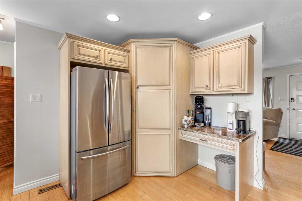 Located in the quiet village of Kitscoty and set on a large lot backing onto a walking path, this beautifully updated bungalow offers space, privacy, and a setting that feels connected to nature. With three bedrooms and two bathrooms, the home has been completely refreshed and thoughtfully updated throughout.The interior features updated flooring, an upgraded kitchen with updated cabinetry and countertops, and a bright, functional layout that feels clean and welcoming. The kitchen is a standout space, desig...