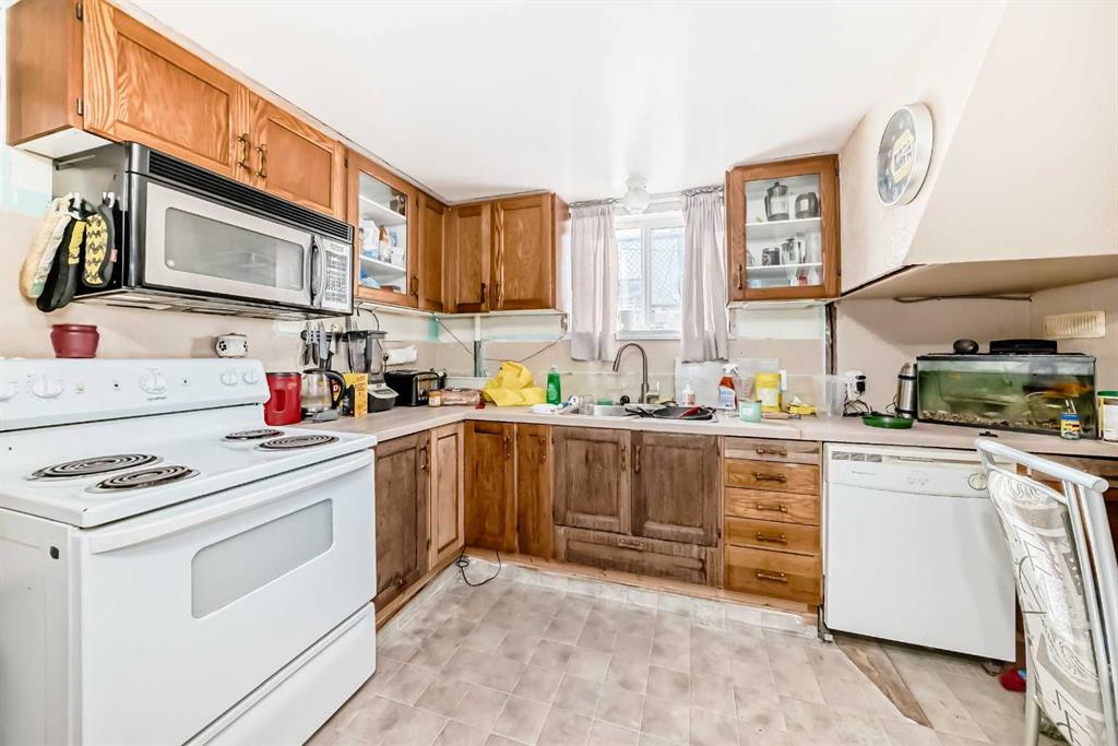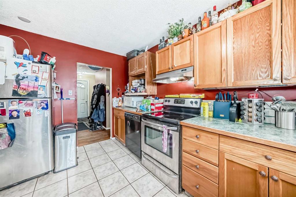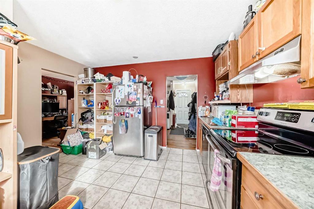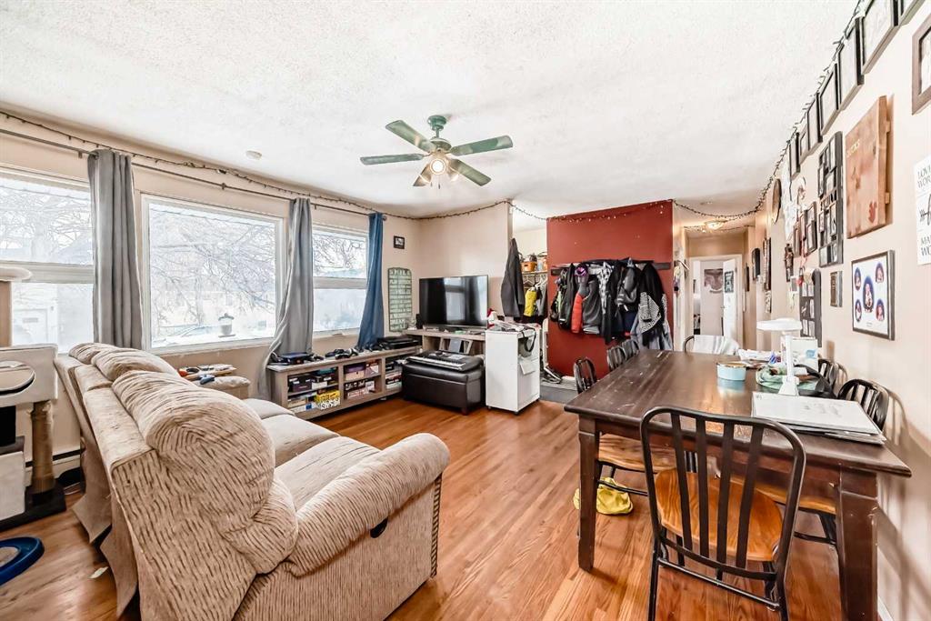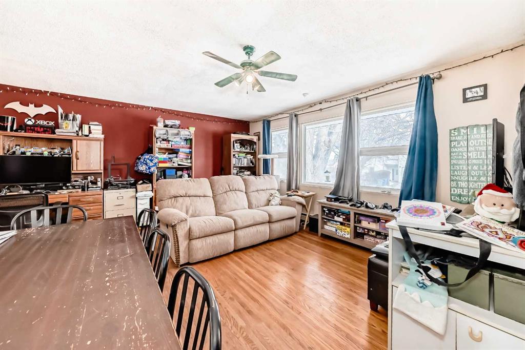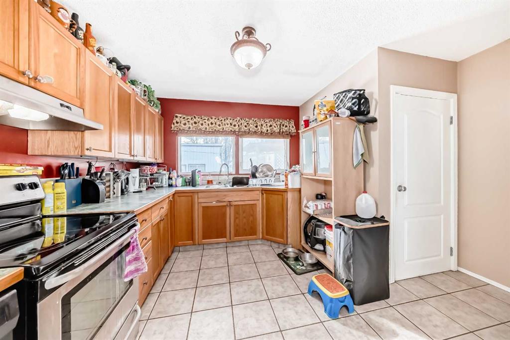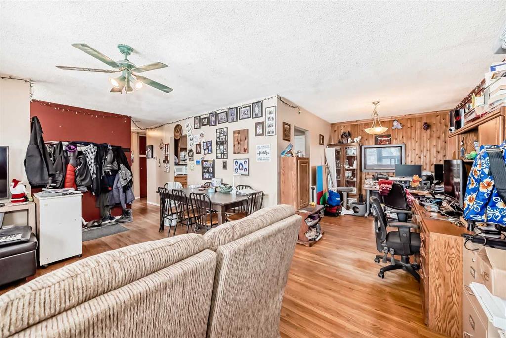 Located in Innisfail, this property features a permitted Legal basement suite offering additional living space with separate functionality. The main floor includes 3 bedrooms, tile flooring in the kitchen, entry, and bathroom, and hardwood throughout the remaining living areas. The open-concept layout connects the living room and dining area, with patio doors leading to a large west-facing deck overlooking a private side yard with mature shrubs. The Legal basement suite offers a separate entry, eat-in kitch...