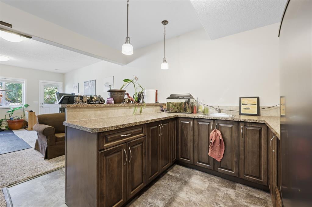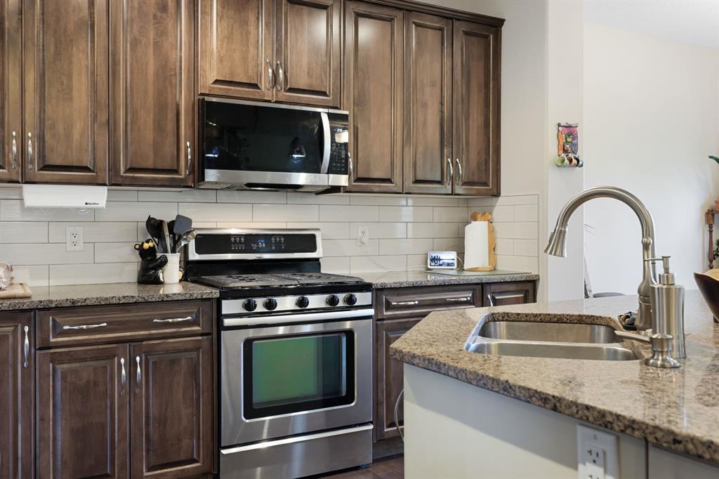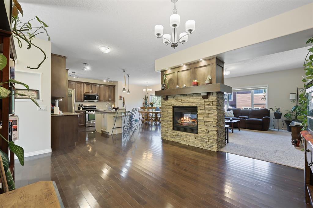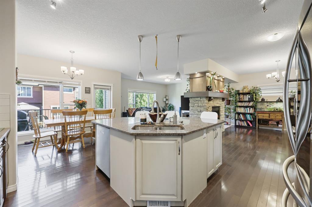 This executive two story walkout home has 3 bedrooms, laundry, and a family room on the upper level with large windows to let in lots of natural light. The main floor features an open concept layout with a kitchen hosting granite countertops, a walk though pantry a spacious living room and a formal dining room, all enhanced by a double sided gas fireplace framed in esquisite stonework. A deck adjacent to the kitchen suitable for an outdoor Catio, includes a gas BBQ hook up. The kitchen is equipped with a...