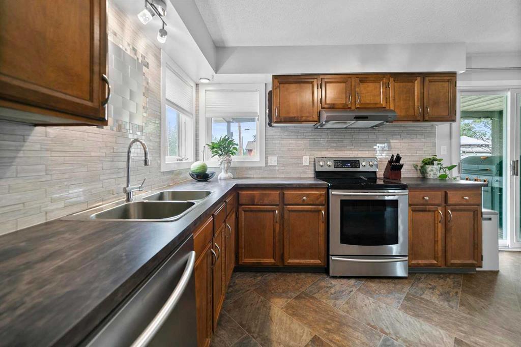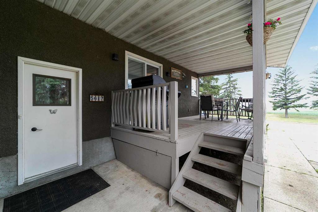 Nicely updated and maintained family home sitting on a corner lot siding farmlands with amazing views! This 5 bedroom, 2 bath bungalow is spacious with a massive updated kitchen/dining area. Right off of the dining area is a sliding patio door leading to a large covered deck. The sunken living room is bright and airy, well laid out with a bay window. The main bath was renovated with a walk-in shower as well as a nice soaker tub. To top it all of the laundry is on the main floor for convenience. The bas...