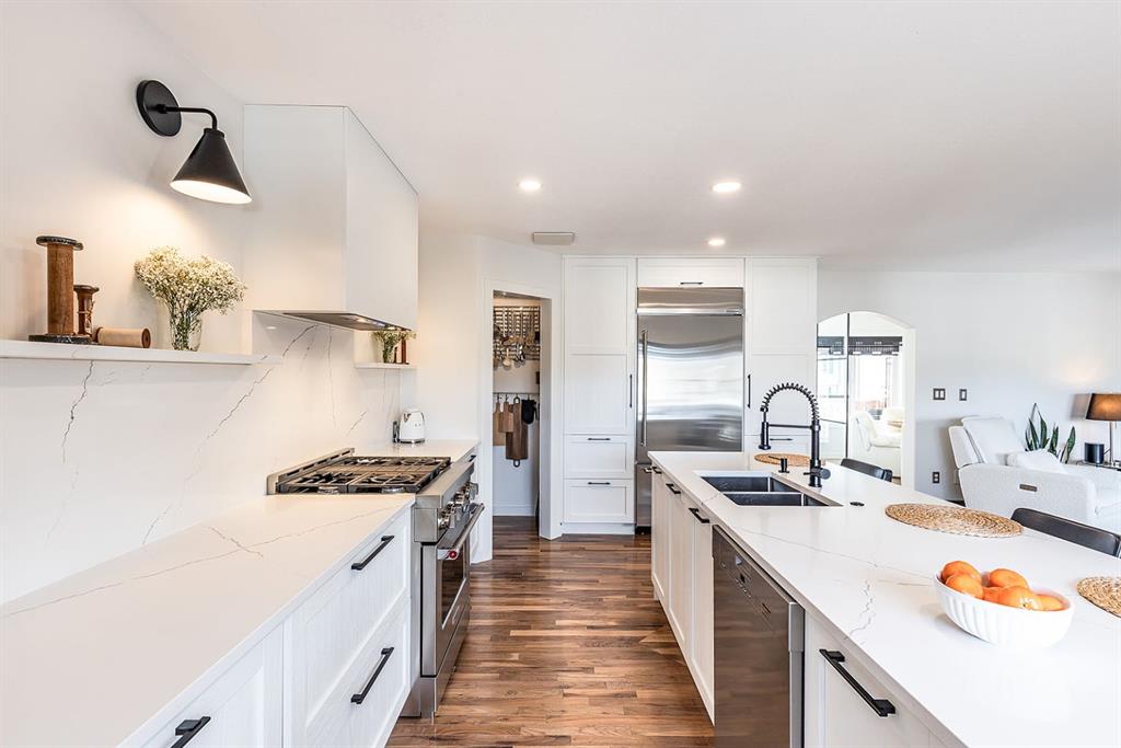 Step into refined living designed for discerning buyers—this fully renovated home offers upscale luxury from top to bottom, inside and out. Every detail has been thoughtfully curated to create a seamless blend of modern sophistication and everyday comfort. The open-concept main floor is both minimalist and striking, featuring rich walnut hardwood flooring and a beautifully designed kitchen where quartz countertops extend effortlessly into a full-height backsplash. Sleek KitchenAid Professional stainless st...