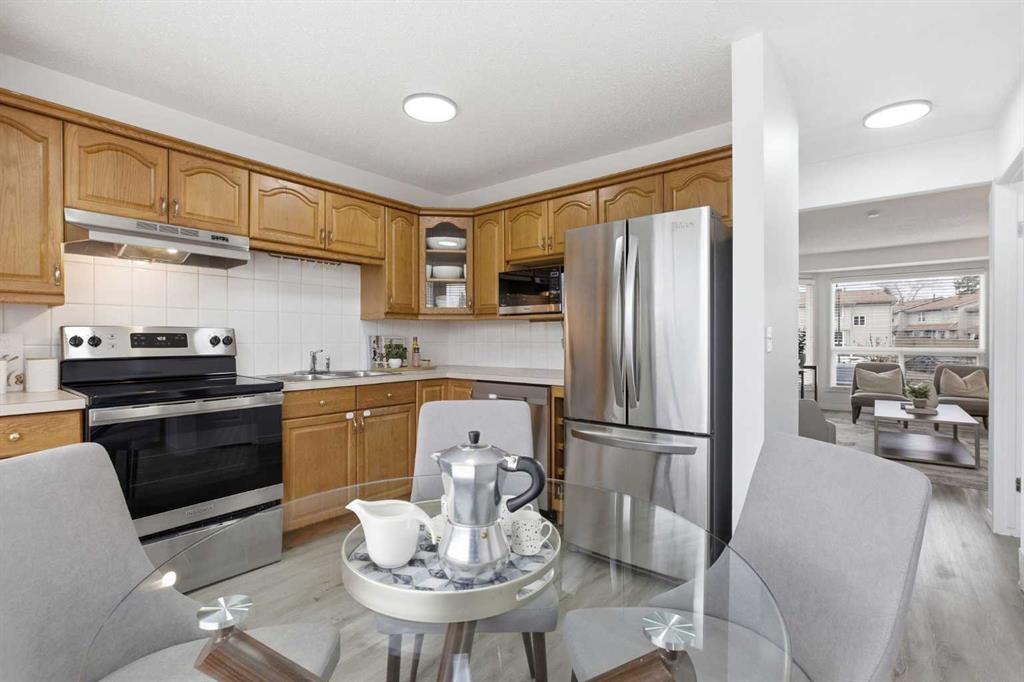 Step into refined comfort and effortless living with this stunning, fully updated townhouse nestled in the established community of Queensland. Boasting over 1,500 SqFt of meticulously developed space, this home offers a seamless blend of modern elegance and everyday functionality. The expansive main floor welcomes you with a large living room that flows smoothly into an inspiring kitchen. Here, you will find beautiful wood cabinetry perfectly complemented by a sleek tiled backsplash and premium stainless s...