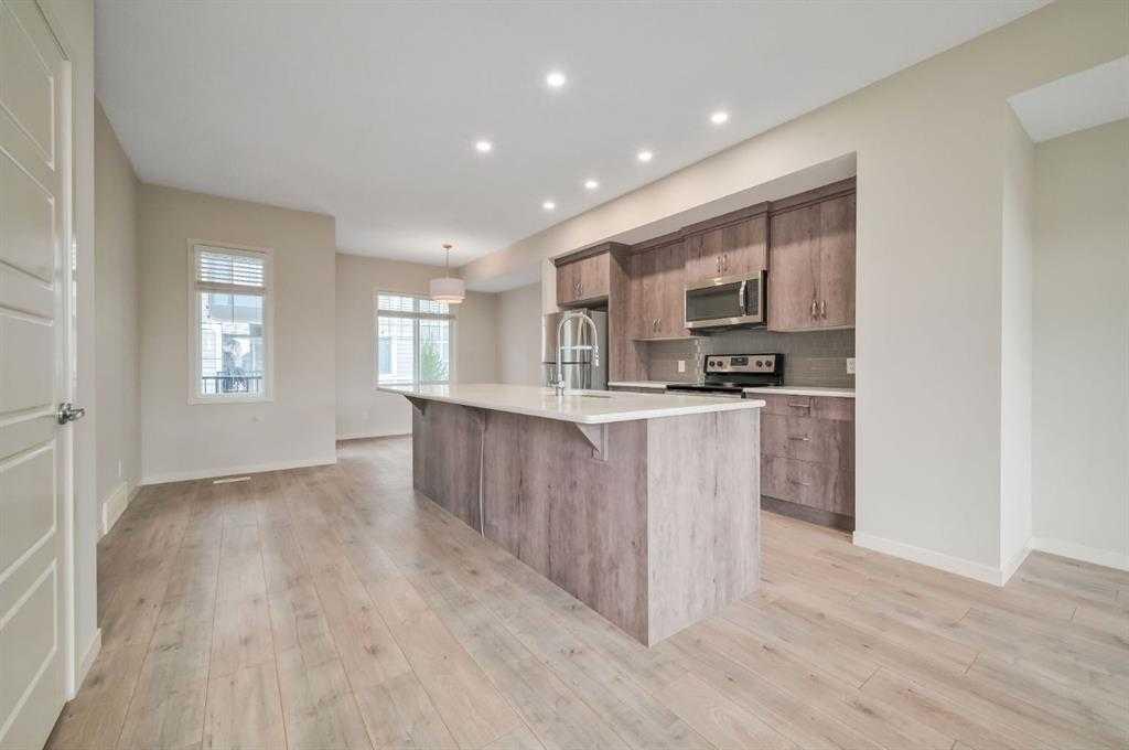 This condo is priced among the most affordable units in the complex. Welcome to this exceptional over 1,700 sq ft townhome in "The Elements of Nolan Hill" complex, offering contemporary style and a private setting backing onto single-family homes. Built in 2018, this quiet unit boasts a unique private front entrance, setting it apart from the rest of the complex. The main floor features an open-concept layout, seamlessly connecting the upgraded kitchen with sleek stone countertops and stainless steel applia...