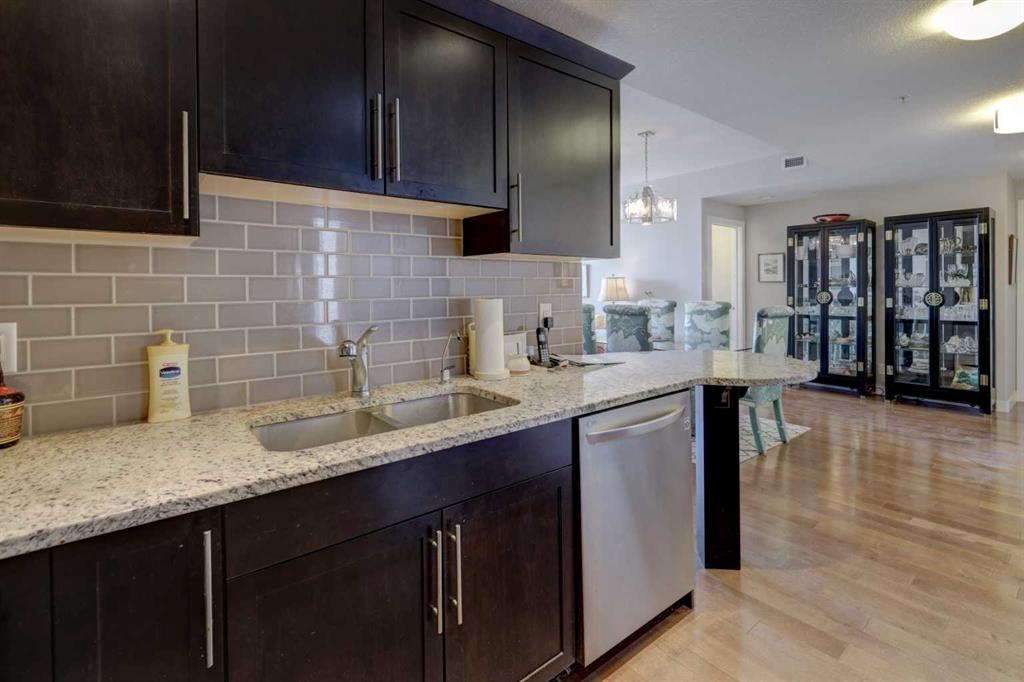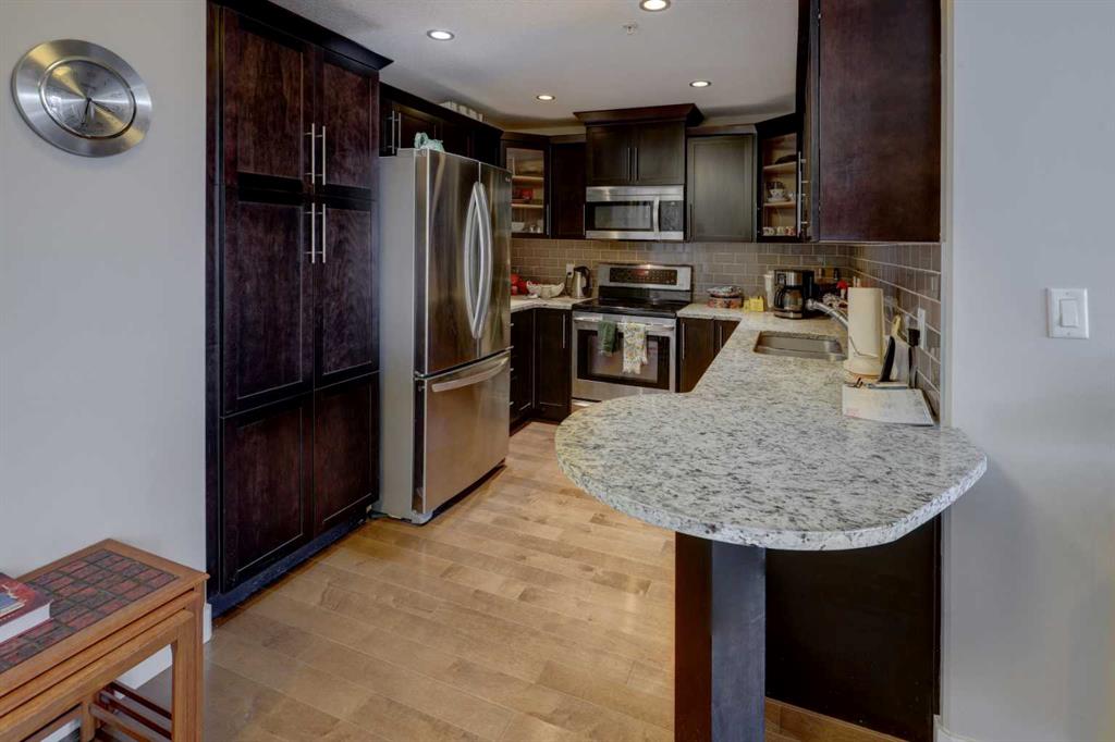First time on the market! Experience fabulous views and wonderful natural light with this 8th floor beautifully finished 2-bedroom, 1.5-bathroom condo with an enhanced custom floor plan. This quiet, south-facing condo welcomes you with expansive windows and double patio doors that open wide in the summer months to let in a refreshing breeze. The high-end kitchen includes upgraded stainless steel appliances, granite countertops, a custom tile backsplash and rich maple cabinetry. The generous living and dinin...