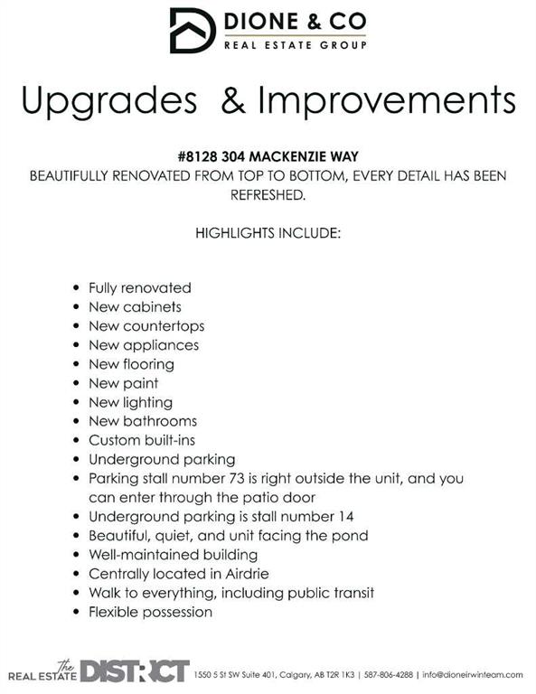 This stunning condo is a rare find — over 1000 sq ft, and beautifully renovated from top to bottom! This unit is set in one of Airdrie’s most peaceful locations, backing onto a serene pond with lots of beautiful nature to obsrve. Inside, every detail has been refreshed: new paint, flooring, trim, light fixtures, knock-down ceilings, and a brand-new kitchen with quartz counters, stylish cabinetry, hidden spice rack, “magic corner” storage, instant hot water tap at the kitchen sink, and all new stainless-stee...